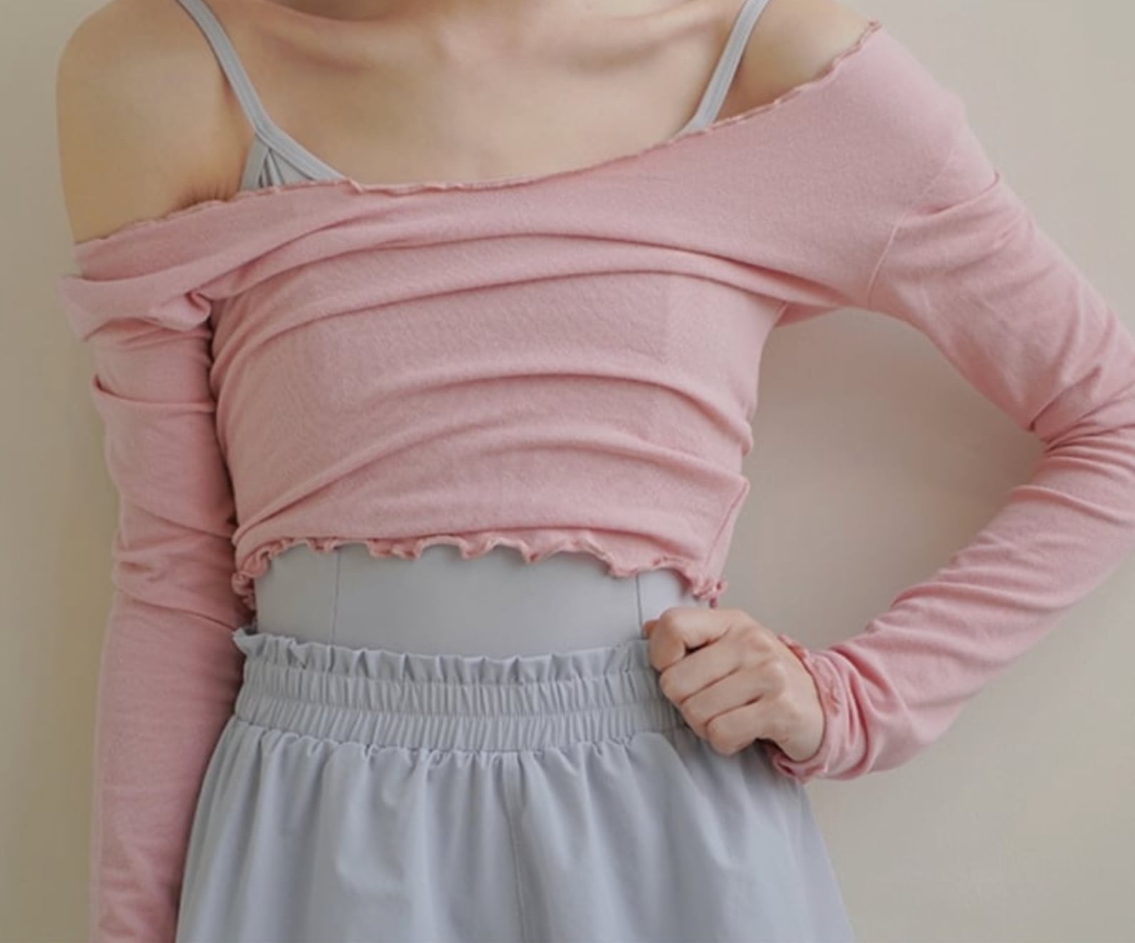 アシンメトリーオープンショルダートップス3色展開 A0226