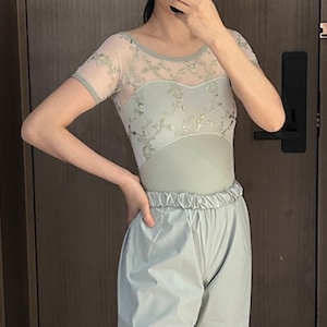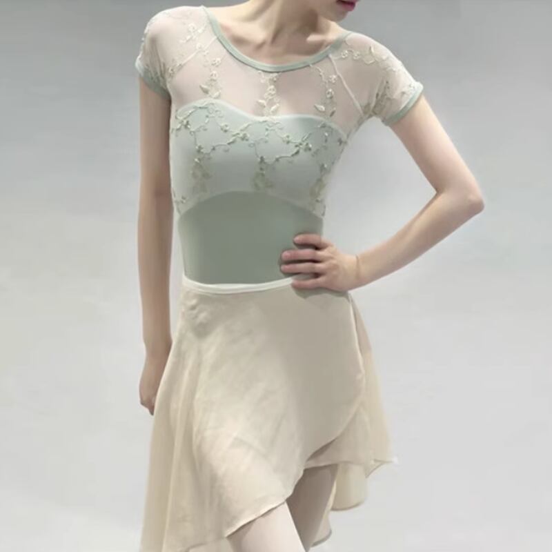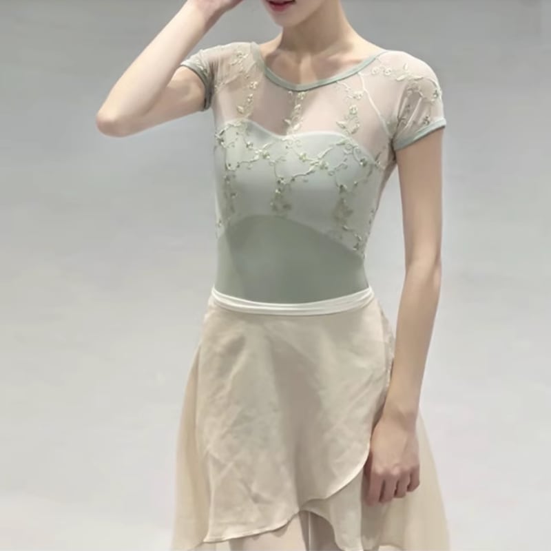 【商品管理番号】 A0165 【商品説明】 パイピング半袖のレオタードは、エレガントな花柄と透け感のあるメッシュが魅力のアイテムです。メッシュの透け感がデコルテを美しく見せ、動きやすさとスタイリッシュさを兼ね備えています。上品な透け感が女性らしさを引き立て、特別なダンスパフォーマンスや日常の練習シーンでも活躍すること間違いなしです。 【サイズ】 【XS】胸囲:76-82cm/ウエスト:58-64cm/ヒップ:78-84cm 【S】胸囲:80-86cm/ウエスト:62-68cm/ヒップ:82-88cm 【M】胸囲:84-90cm/ウエスト:66-72cm/ヒップ:86-92cm 【L】胸囲:88-94cm/ウエスト:70-76cm/ヒップ:90-96cm 【XL】胸囲:92-98cm/ウエスト:74-80cm/ヒップ:94-100cm 【カラー】 グリーン ブラック ベージュ 【素材】 ポリエステル30%/ナイロン40%/ポリウレタン40%