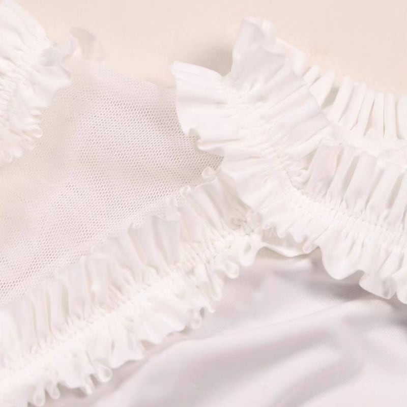 【商品管理番号】 A0172 【商品説明】 フェミニンさを引き立てる大胆なバックオープンデザインとデコルテのフリルが特徴のアイテムです。セクシーながらもかわいらしさを兼ね備えたこのレオタードは、ダンスパフォーマンスや特別な日常の練習にぴったりです。背中が空いたデザインが美しいラインを強調し、動くたびに心を弾ませる一着となっています。 【サイズ】 【S】胸囲:64cm/ウエスト:48.8cm/ヒップ:70cm/着丈:66cm 【M】胸囲:68cm/ウエスト:52.8cm/ヒップ:74cm/着丈:68cm 【L】胸囲:72cm/ウエスト:56.8cm/ヒップ:78cm/着丈:70cm 【XL】胸囲:76cm/ウエスト:60.8cm/ヒップ:82cm/着丈:72cm 【カラー】 ホワイト ブルー 【素材】 ポリエステル30%/ ナイロン40%/ ポリウレタン30%