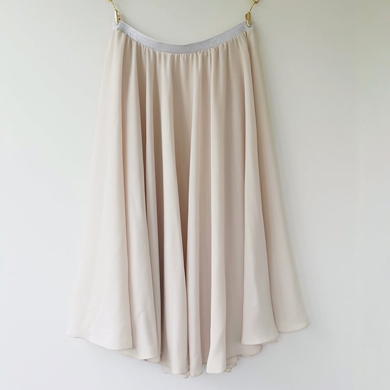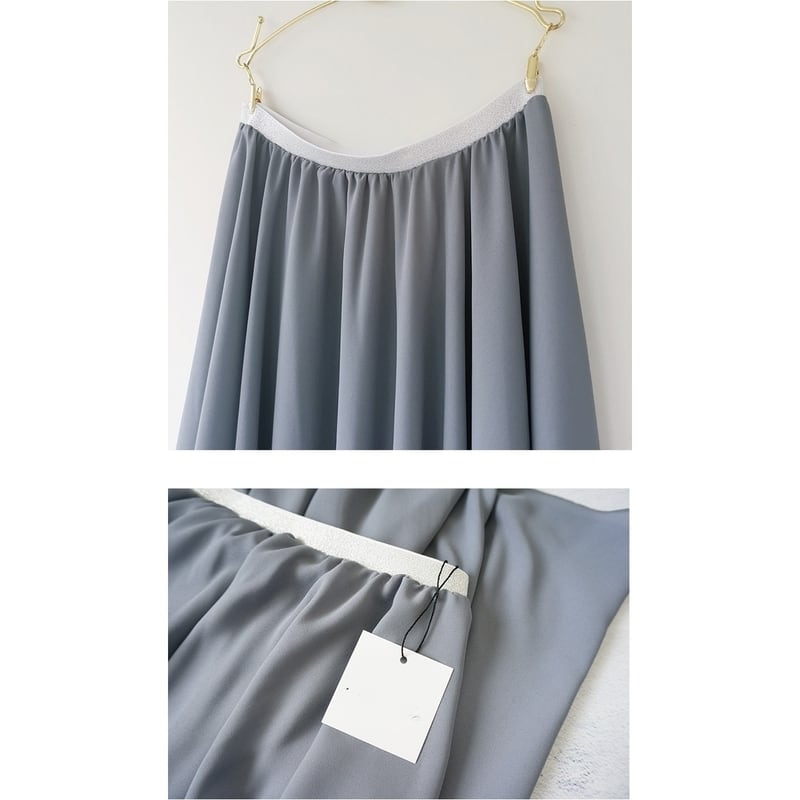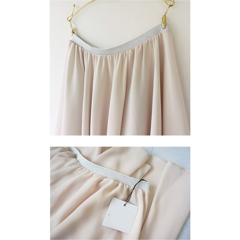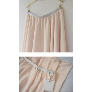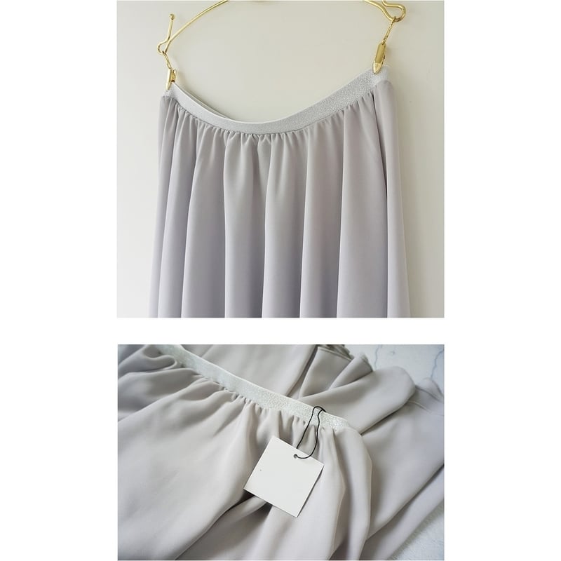 【商品管理番号】 A0177 【商品説明】 軽やかなシフォン素材を使用したウエストゴムシフォンフレアスカートは、ミディアム丈の絶妙なバランスが魅力的なアイテムです。柔らかな透け感が、女性らしさを引き立て、さりげなくエレガントな雰囲気を演出します。ウエストゴム仕様で快適な着心地を実現し、日常使いや特別な日のお出かけにもぴったりです。流れるようなフレアが美しいシルエットを作り出し、動くたびに心躍る一着となっています 【サイズ】 【FREE】 ウエスト:平置き最小28cm~最大47cm/着丈:58cm 【カラー】 ブラック ベージュ ピンク ライトグレー ダークグレー スカイブルー 【素材】 ポリエステル100%