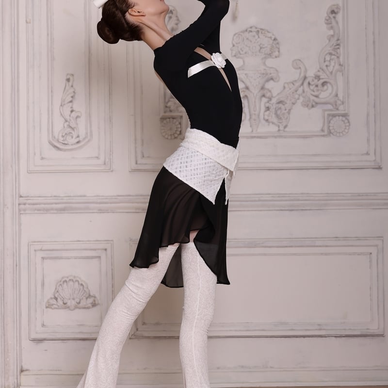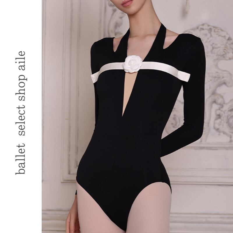 【商品管理番号】 A0180 【商品説明】 カメリア付きのホワイトリボンが際立つ魅力的なブラック長袖レオタードです。深めのVデザインとデコルテのカットアウトが、女性らしい華やかさを演出します。スタイリッシュな印象を与え、ダンスパフォーマンスや特別なシーンにも最適な一着です。すっきりとした美しいシルエットが、動くたびに洗練された佇まいを引き立てます。 【サイズ】 【S】胸囲:62cm/ウエスト:44.5cm/袖丈:51.9cm/着丈:61.7cm 【M】胸囲:66cm/ウエスト:48.5cm/袖丈:52.9cm/着丈:63.3cm 【L】胸囲:70cm/ウエスト:52.5cm/袖丈:53.9cm/着丈:64.9cm 【XL】胸囲:74cm/ウエスト:56.5cm/袖丈:54.9cm/着丈:66.5cm 【カラー】 ブラック 【素材】 ナイロン85%/ポリウレタン15%