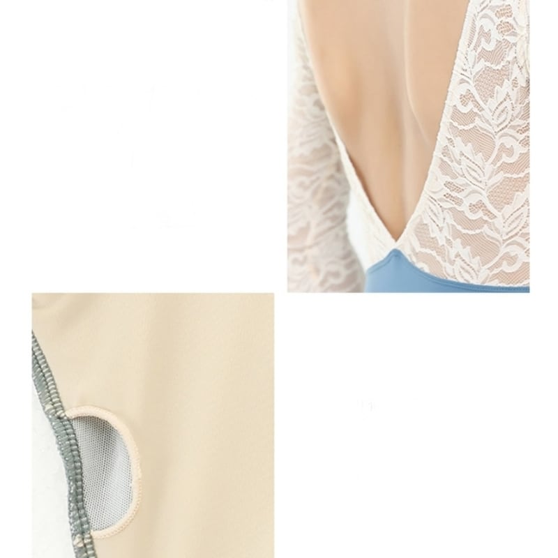 【商品管理番号】 A0167 【商品説明】 フェミニンさを引き立てるバックオープンデザインとレース切り替えの袖が特徴のアイテムです。セクシーながらもかわいらしさを兼ね備えたこのレオタードは、ダンスパフォーマンスや特別な日常の練習にぴったりです。背中が空いたデザインが美しいラインを強調し、動くたびに心を弾ませる一着となっています。 【サイズ】 【S】胸囲:74-84cm/ウエスト:60-66cm/ヒップ:84-90cm 【M】胸囲:78-88cm/ウエスト:64-70cm/ヒップ:88-94cm 【L】胸囲:82-92cm/ウエスト:68-74cm/ヒップ:92-98cm 【XL】胸囲:86-96cm/ウエスト:72-78cm/ヒップ:96-102cm 【2XL】胸囲:90-100cm/ウエスト:76-82cm/ヒップ:100-106cm 【カラー】 パープル グレーグリーン ブルー ミント ピンク 【素材】 ポリエステル80%/ポリウレタン20%