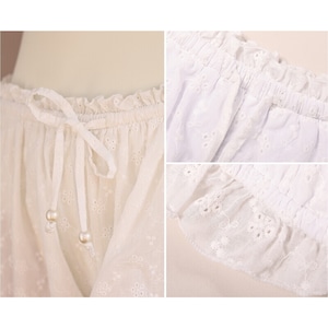 【商品管理番号】 A0192 【商品説明】 バルーンショートパンツは、ドローストリングウエストでで快適な着心地を兼ね備えた一着です。ふんわりとしたバルーンシルエットが特徴的で動きやすさを追求しつつ、パンチングレースの透け感がスタイリッシュなスタイルを演出します。軽やかな素材感が暑い季節でも快適さを保ち、多彩なカラー展開で、あなたの個性を引き立てるアイテムです! 【サイズ】 【M】ウエスト:60cm/ヒップ:129.714cm/着丈:25.891cm 【XL】ウエスト:68cm/ヒップ:142.527cm/着丈:27.891cm 【カラー】 ホワイト 【素材】 コットン100%