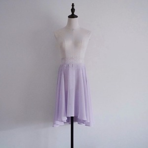 【商品管理番号】 A0196 【商品説明】 フィッシュテールのシフォンスカートは、動くたびに揺れる上品なフレア感が洗練されたデザインです。ウエストの花柄レースが華やかで、軽やかなシフォン素材は涼し気でさらっとした動きやすさを提供します。フィッシュテールのシルエットが足元を美しく見せ、エレガントな印象を与えます。 【サイズ】 【FREE】ウエスト:30-41cm/着丈:45-60cm 【カラー】 ブルー ピンク パープル ネイビー ミルクティー パープルブラウン オレンジ 【素材】 ポリエステル100%