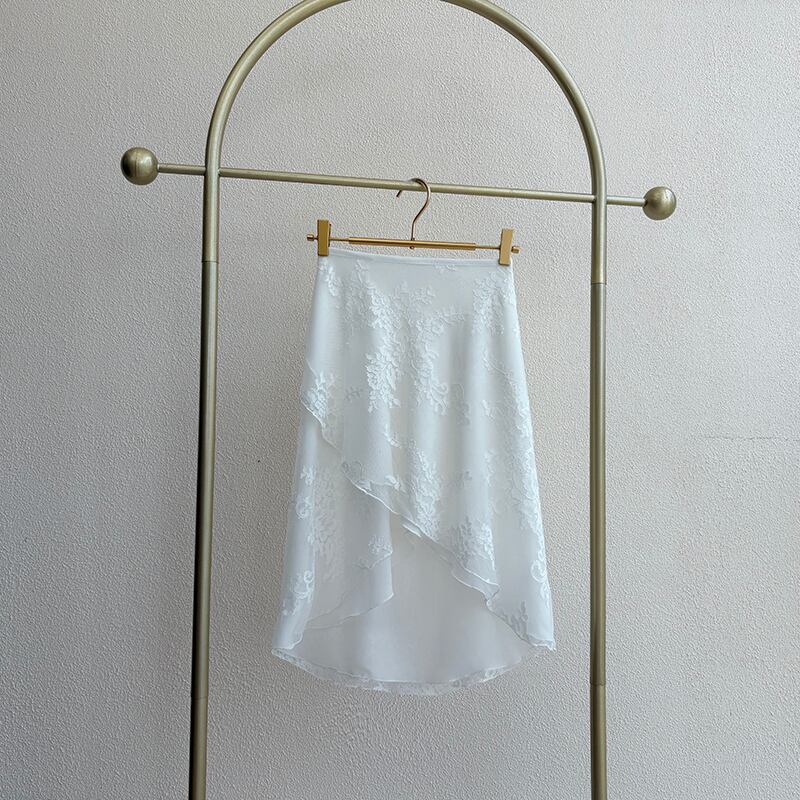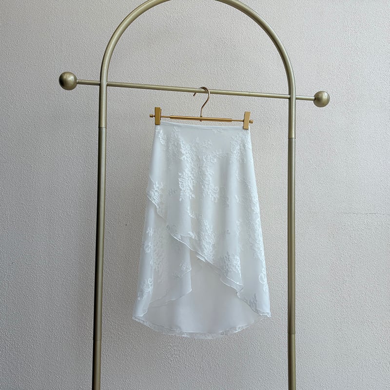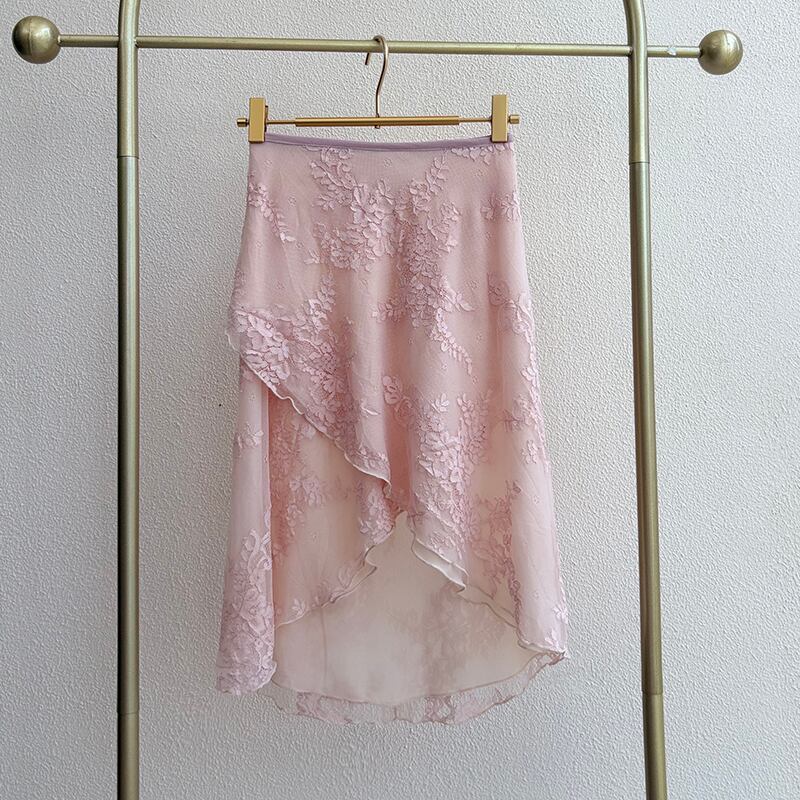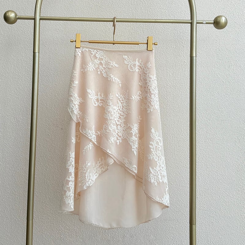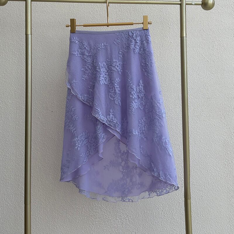 【商品管理番号】 A0197 【商品説明】 ラップデザインのフィッシュテールスカートは、動くたびに揺れる上品なフレア感が洗練されたデザインです。軽やかな花柄レース素材は涼し気な印象で、さらっとした動きやすさを提供します。フィッシュテールのシルエットが足元を美しく見せ、エレガントな印象を与えます。 【サイズ】 【FREE】 ウエスト:85-100cm/着丈:35-60cm 【カラー】 ピンク パープル ベージュ ブラック ホワイト 【素材】 ポリエステル100%