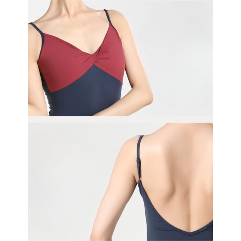 【商品管理番号】 A0208 【商品説明】 こなれたツートーンデザインのレオタードは、バストのノットが目を引くスタイリッシュな一着です。セクシーなバックオープンデザインが背中を美しく見せ、すっきりとしたキャミソールタイプが魅力を引き立てます。ダンスパフォーマンスや特別な練習などロングユースが可能なアイテムです。 【サイズ】 【S】胸囲:74-84cm/ウエスト:60-66cm/ヒップ:84-90cm 【M】胸囲:78-88cm/ウエスト:64-70cm/ヒップ:88-94cm 【L】胸囲:82-92cm/ウエスト:68-74cm/ヒップ:92-98cm 【XL】胸囲:86-96cm/ウエスト:72-78cm/ヒップ:96-102cm 【2XL】胸囲:90-100cm/ウエスト:76-82cm/ヒップ:100-106cm 【カラー】 ネイビー/シアン ネイビー/ワインレッド ブルー/シアン 【素材】 ナイロン80%/ポリウレタン20%