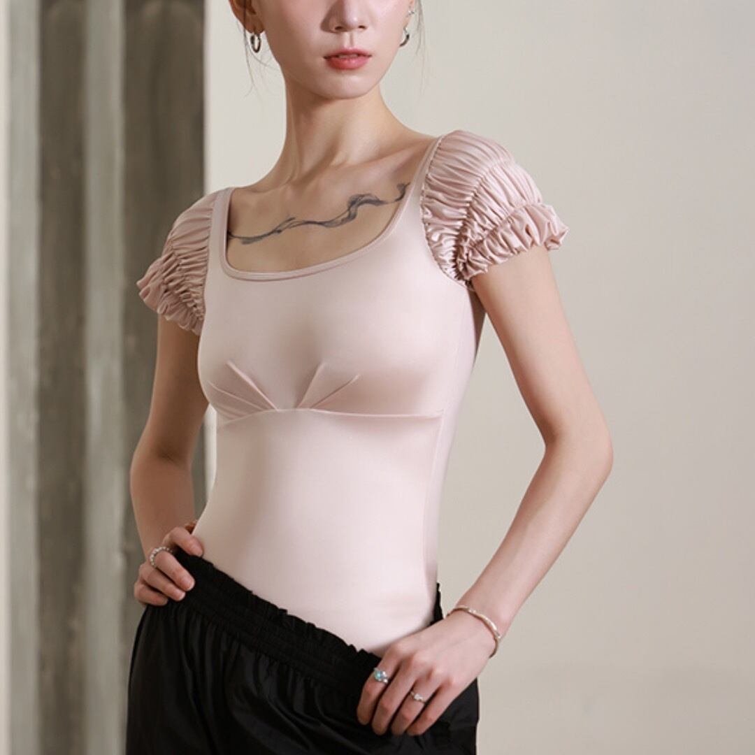 【商品管理番号】 A0053 【商品説明】 ギャザースリーブが特徴のサテンレオタードは柔らかなサテン素材が優雅な動きを演出し、身体に心地よくフィットします。流れるようなシルエットと上品なデザインがダンスパフォーマンスや日常の練習に最適です。軽やかさを感じながら、あなたのスタイルを引き立て、自分らしさを表現できるアイテムです。 【サイズ】 【S】胸囲:68cm/ウエスト:54.8cm/ヒップ:72cm 【M】胸囲:72cm/ウエスト:58.8cm/ヒップ:76cm 【L】胸囲:76cm/ウエスト:62.8cm/ヒップ:80cm 【XL】胸囲:80cm/ウエスト:66.8cm/ヒップ:84cm 【カラー】 モランディ・グレイ チェリーブロッサムピンク 【素材】 ナイロン 60%/ポリエステル 20%/ポリウレタン 20%