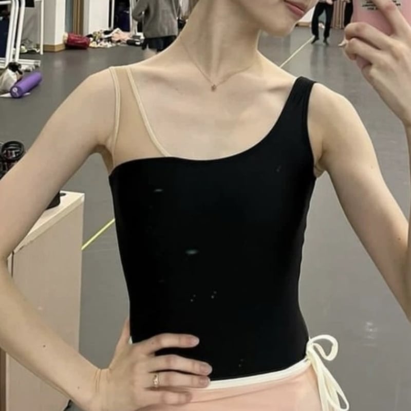 【商品管理番号】 A0223 【商品説明】 ツートーン配色のアシンメトリーストラップデザインが特徴的なレオタードです。透け感のあるメッシュストラップが、洗練された印象を与え、シックなツートーンが魅力を引き立てます。特別なパフォーマンスやレッスンにぴったりな一着で、あなたの動きに優雅さを与えます。 【サイズ】 【S-M】胸囲:64cm/ウエスト:54cm/ヒップ:66cm/着丈:64.5cm 【M-L】胸囲:68cm/ウエスト:58cm/ヒップ:70cm/着丈:66cm 【カラー】 ブラック ベージュ 【素材】 ナイロン80%/ポリウレタン20%