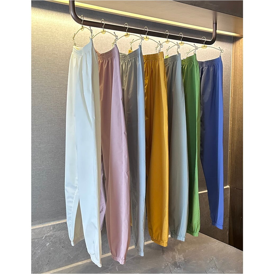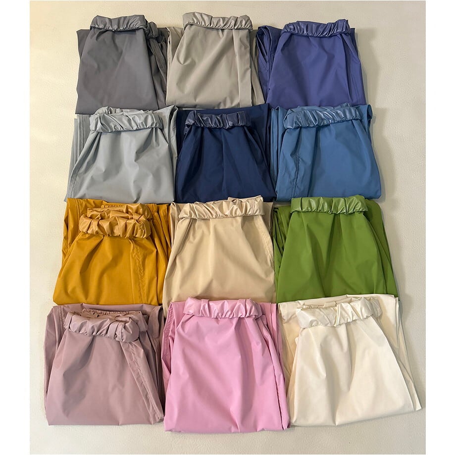 【商品管理番号】 A0228 【商品説明】 ビビットなカラーが特徴的なデザインで、さまざまなシーンで活躍するウォームアップパンツです。軽やかな素材感が心地よく、アクティブな動きをサポートします。リラックスしたシルエットが身体を包み込み、スタイリッシュな印象を与えます。優れた通気性を兼ね備えているため、ウォーミングアップやフィットネスの最中でも快適さを保ち、思い切り身体を動かせることができます。 【サイズ】 【S】総丈:100cm/身長:150-160cm/体重:40-47.5kg 【M】総丈:103cm/身長:155-165cm/体重:47.5-55kg 【L】総丈:105cm/身長:160-170cm/体重:52.5-62.5kg 【カラー】 ブラック ブルー オフホワイト シルバー イエロー ピンク 【素材】 ポリエステル50%/ナイロン50%