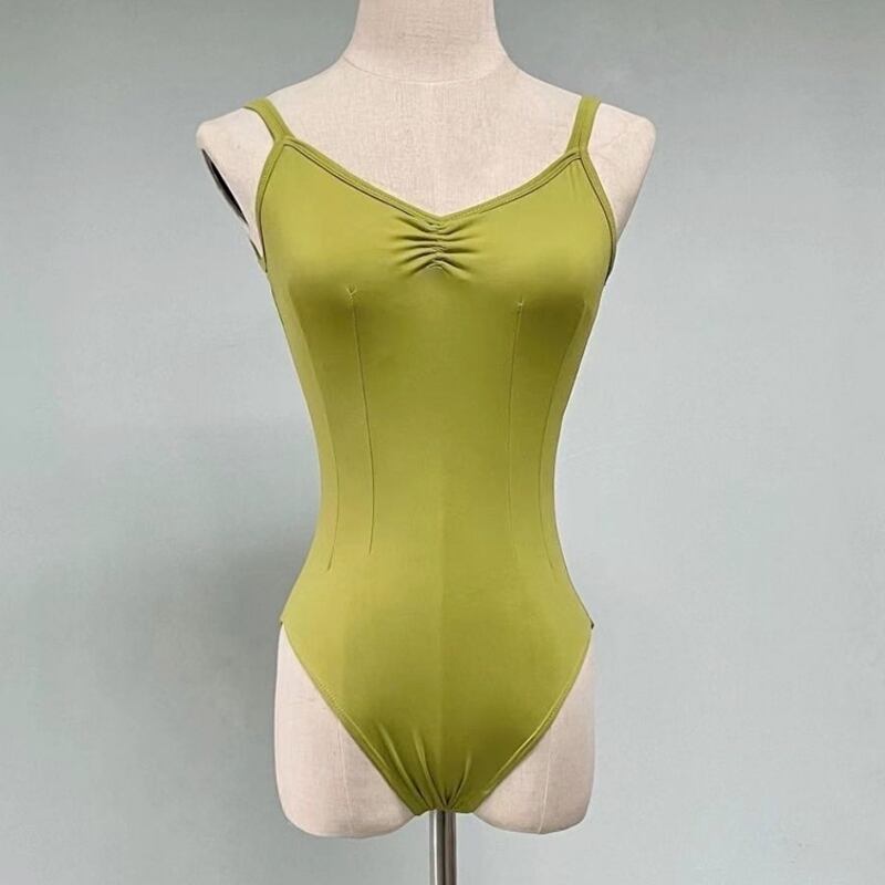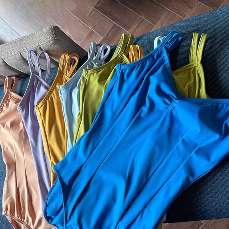 【商品管理番号】 A0233 【商品説明】 ウエスト周りのプリーツ切り替えが魅力のキャミソールレオタードです。シンプルで上品なデザインが、上質な印象を与え、リハーサルや日常のトレーニングシーンにぴったりです。バックオープンデザインがエレガントさを引き立て、身体のラインを美しく見せてくれます。柔らかな素材感が心地よく、動きやすさを実現し、思い切り身体を動かすことができます! 【サイズ】 【XS】胸囲:76-82cm/ウエスト:58-64cm/ヒップ:78-84cm 【S】胸囲:80-86cm/ウエスト:62-68cm/ヒップ:82-88cm 【M】胸囲:84-90cm/ウエスト:66-72cm/ヒップ:86-92cm 【L】胸囲:88-94cm/ウエスト:70-76cm/ヒップ:90-96cm 【XL】胸囲:92-98cm/ウエスト:74-80cm/ヒップ:94-100cm 【カラー】 ネイビー ブルー グリーン ピンク 【素材】 ナイロン80%/ポリウレタン20%
