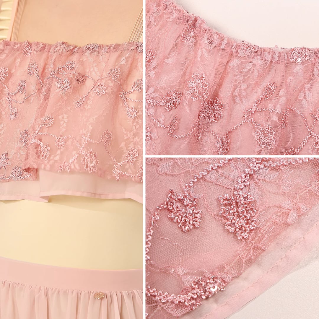 【商品管理番号】 A0075 【商品説明】 シフォンレースセットアップトップスは、柔らかなシフォン素材と華やかなレースの組み合わせが魅力的な一着です。エレガントなデザインは、カジュアルな日常使いから特別なシーンまで幅広く対応し、優美さを引き立てます。軽やかなシフォンが身体にやさしくフィットし、動くたびに美しいシルエットを作り出します 【サイズ】 トップス 【M】胸囲:76cm 【XL】胸囲:90cm スカート 【M】丈 81cm/ウエスト:62cm 【XL】丈 83cm/ウエスト:70cm 【カラー】 ピンク 【素材】 ポリエステル100%