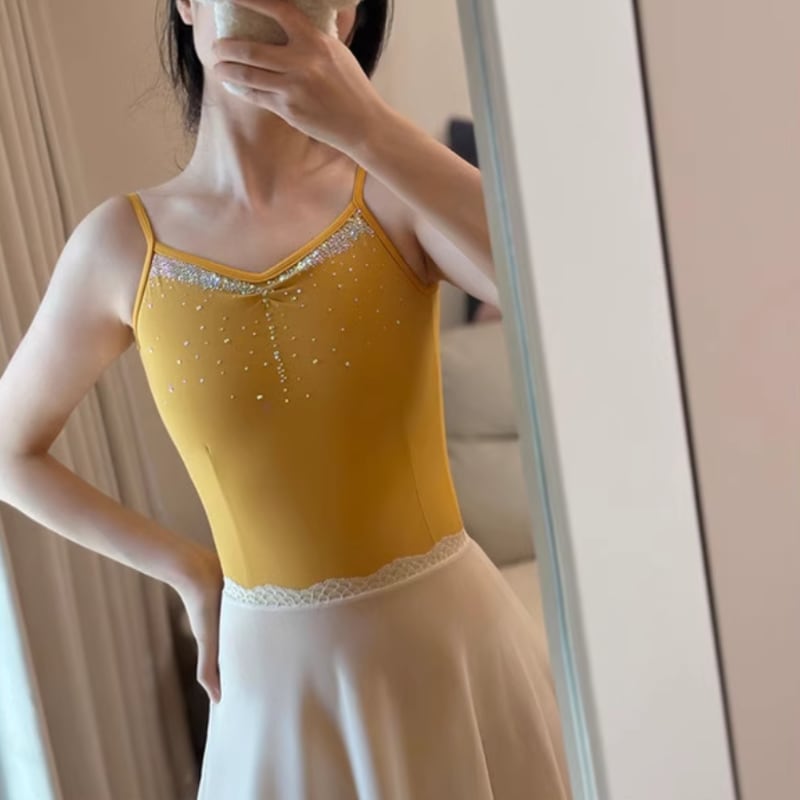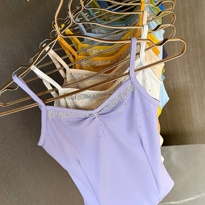 【商品管理番号】 A0068 【商品説明】 デコルテ周りを可憐に引き立てるラインストーンが目を惹く、シンプルなキャミソールタイプのレオタードです。優雅に姿勢を美しく演出し、特別なパフォーマンスや日常のレッスンに最適です。シンプルながらも魅力溢れるデザインが、動くたびにあなたの美しさを引き立ててくれます。 【サイズ】 【XS】胸囲:76-82cm/ウエスト:58-64cm/ヒップ:78-84cm 【S】胸囲:80-86cm/ウエスト:62-68cm/ヒップ:82-88cm 【M】胸囲:84-90cm/ウエスト:66-72cm/ヒップ:86-92cm 【L】胸囲:88-94cm/ウエスト:70-76cm/ヒップ:90-96cm 【XL】胸囲:92-98cm/ウエスト:74-80cm/ヒップ:94-100cm 【カラー】 パープル/ ディープブルー/ ターコイズ/ グリーン/ アボカド/ マンゴーイエロー/ ベージュ/ ブルー/ グレーグリーン/ グレーブルー/ ピンクオフホワイト/ ライトイエロー 【素材】ナイロン80%/ ポリウレタン20%
