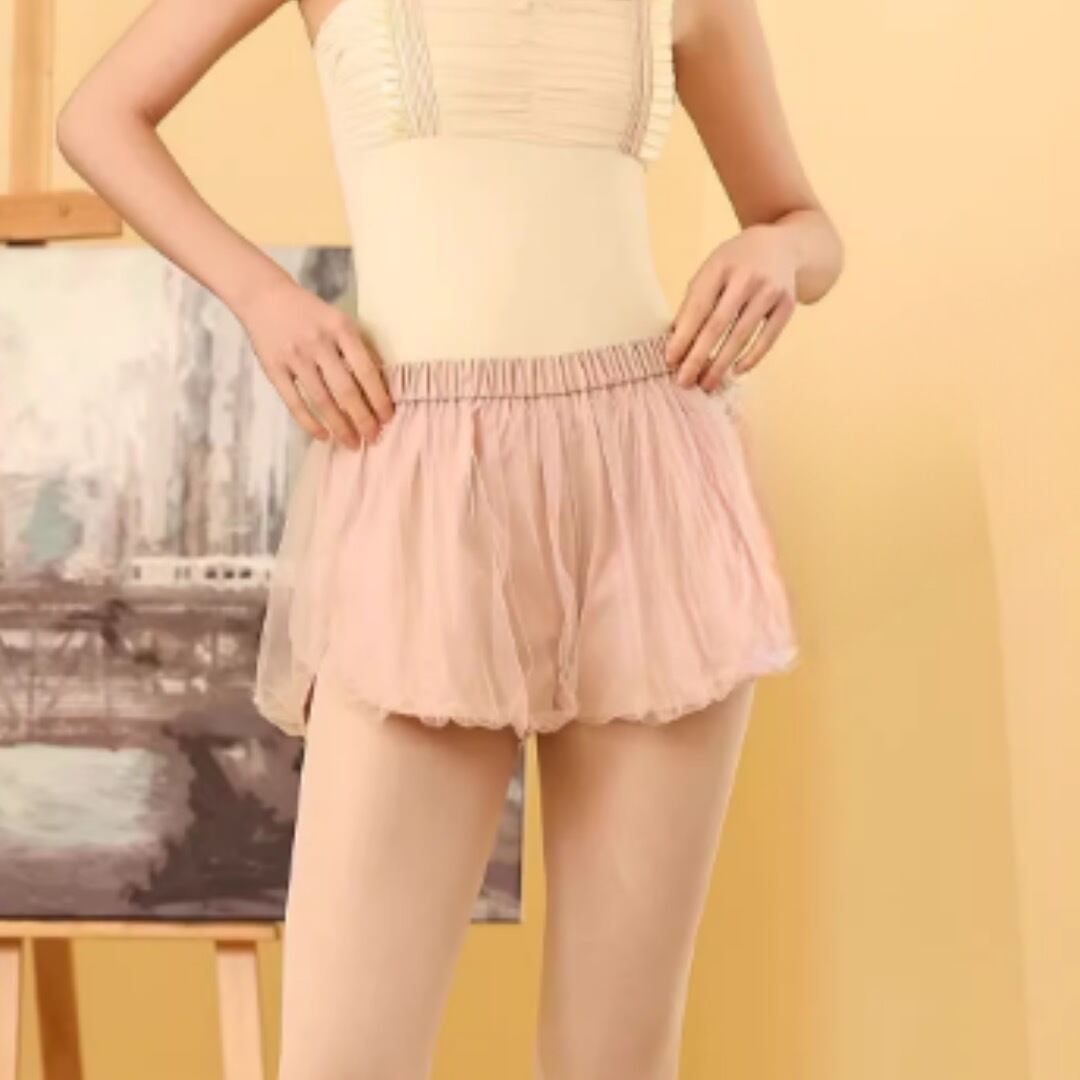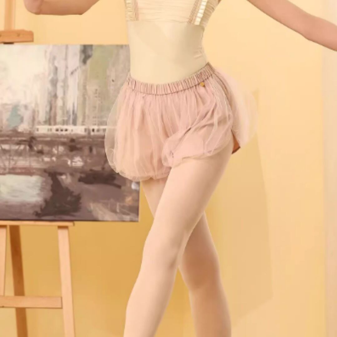 トレーニングチュールハーフパンツは、軽やかなチュール素材と快適なフィット感が魅力です。ハーフパンツのデザインが動きを妨げず、トレーニングやダンスの際に活躍するアイテムです。通気性が良く、快適さを保ちながらもスタイリッシュな印象を与えます。