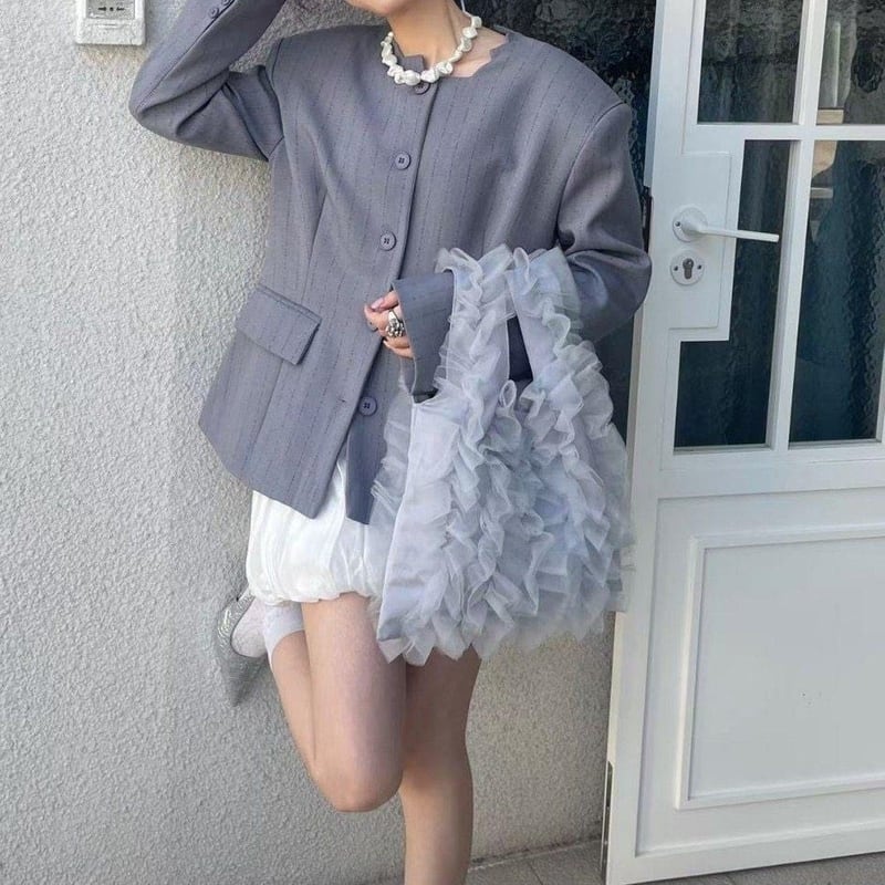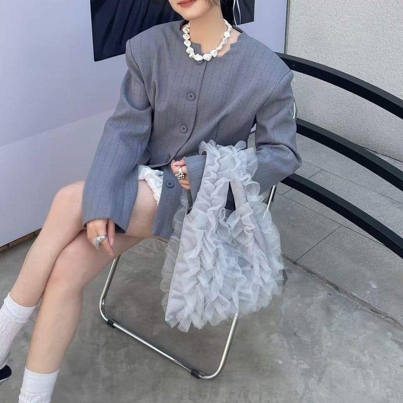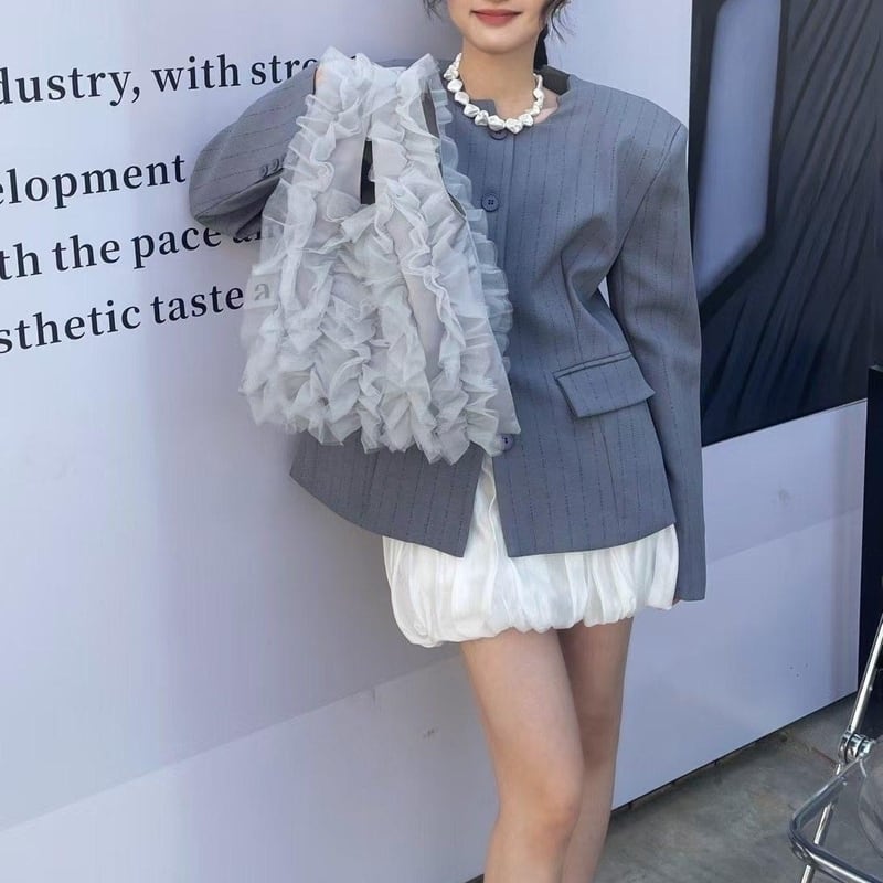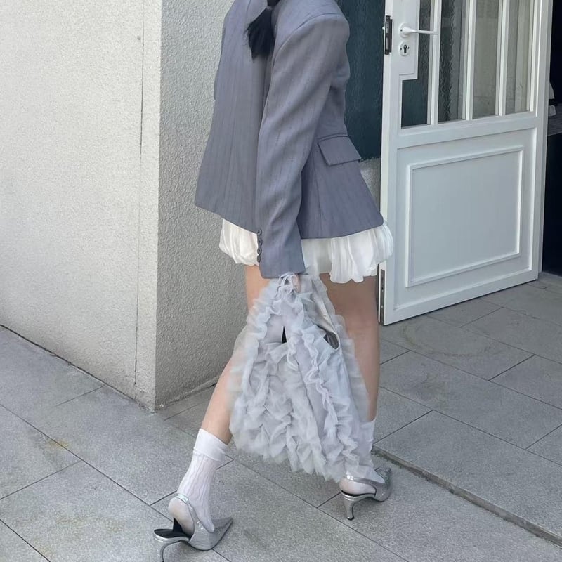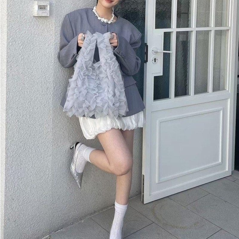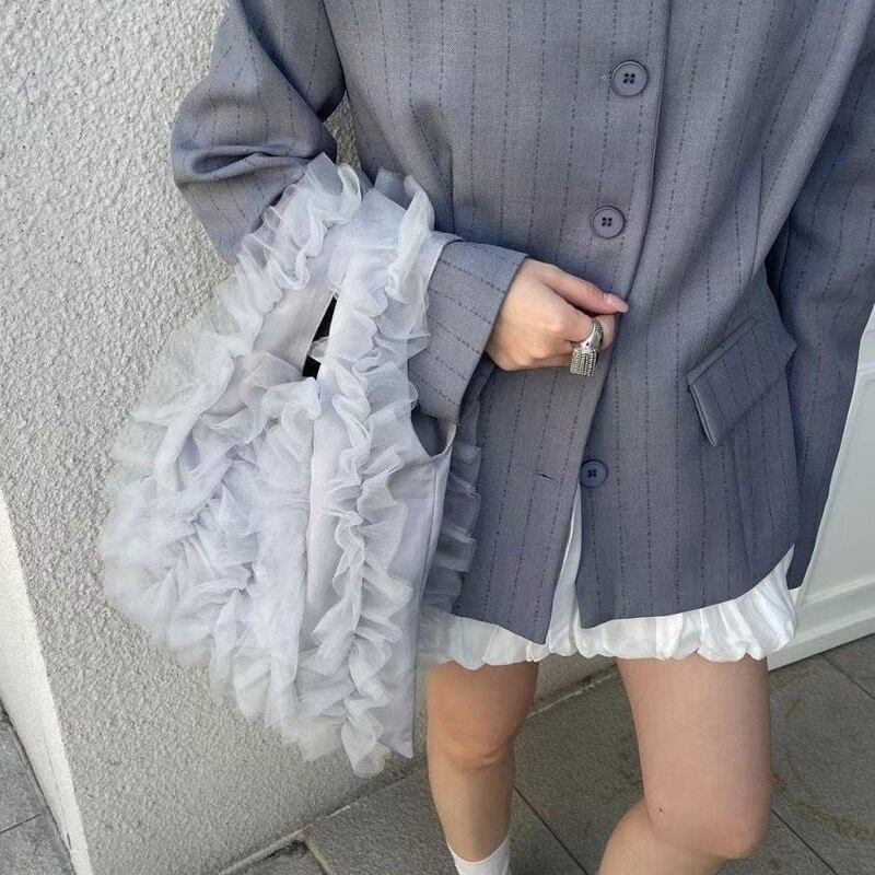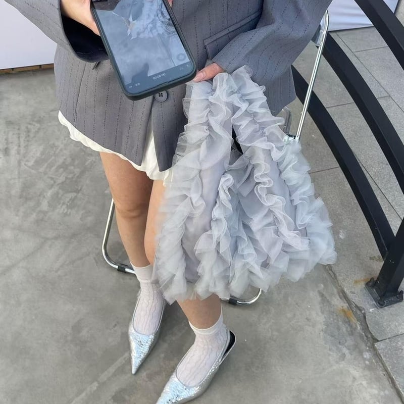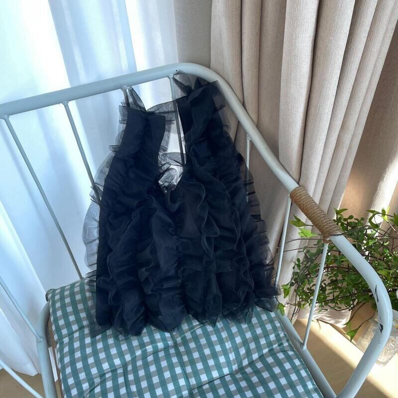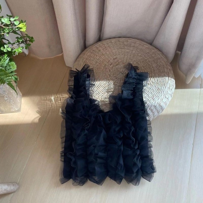 【商品管理番号】 A0273 【商品説明】 チュールフリルハンドバッグは、全面にあしらった可愛いチュールのフリルが特徴のアイテムです。適度なサイズ感と透け感があり、どんなスタイルにも映える存在感抜群のデザインです。カジュアルから少し特別なシーンまで、幅広いシーンで活躍すること間違いなしのバッグです!普段使いやお出かけに、あなたのコーディネートに彩りを与えてくれます。 【サイズ】 【FREE】高さ:25cm/横:33cm/マチ:1cm 【カラー】 オフホワイト グレー ブラック 【素材】 ポリエステル100%