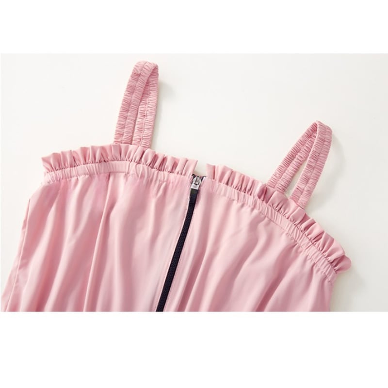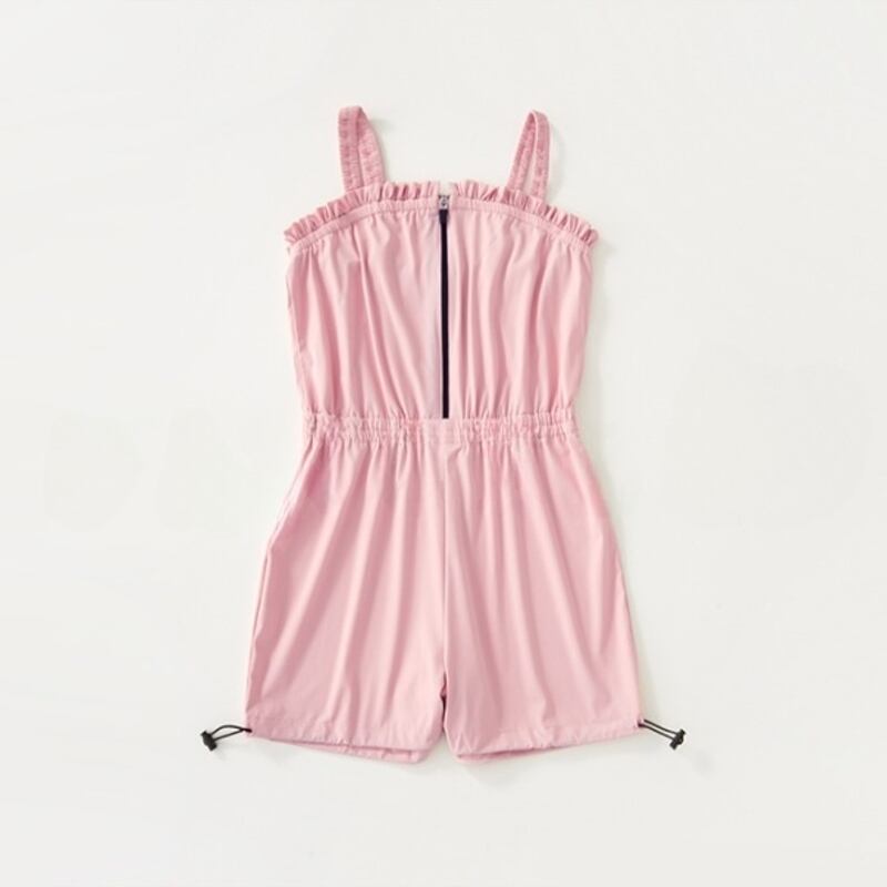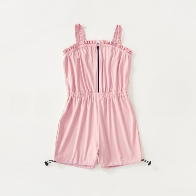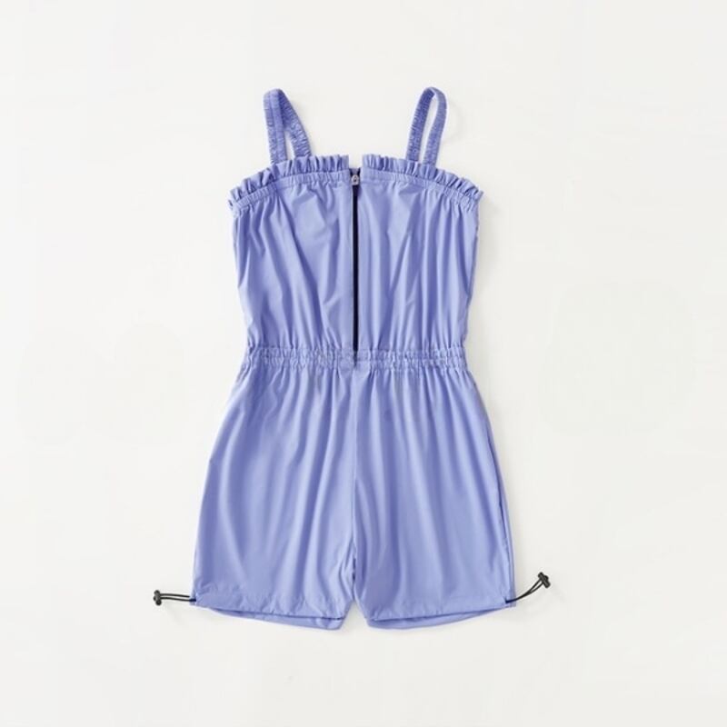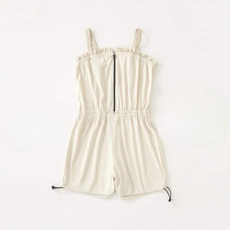 【商品管理番号】 A0109 【商品説明】 デコルテのフリルが可愛いジップアップタイプのノースリーブジャンプスーツは、ウエストはゴム入りで、裾はドローストリングで調節可能なデザインで、ウォームアップに最適な一着です。軽やかな素材で動きやすく、スポーツやトレーニングをスタイリッシュに演出します。 【サイズ】 【S】胸囲:80cm/ヒップ:92cm 【M】胸囲:84cm/ヒップ:96cm 【L】胸囲:88cm/ヒップ:100cm 【カラー】 パープル ピンク ホワイト ブラック 【素材】 ナイロン80%/ポリウレタン20%