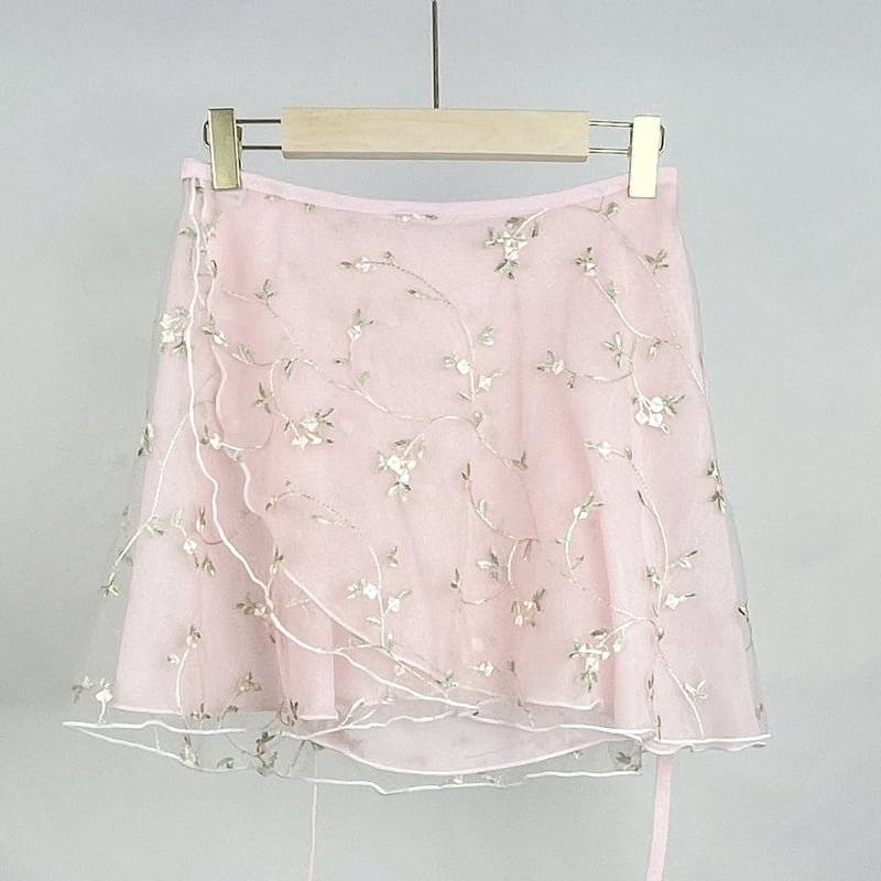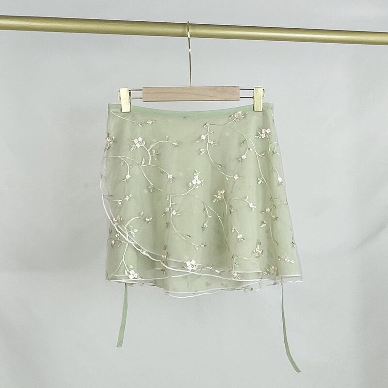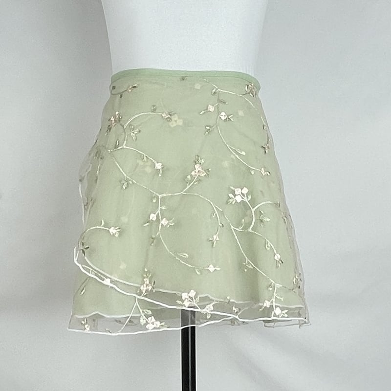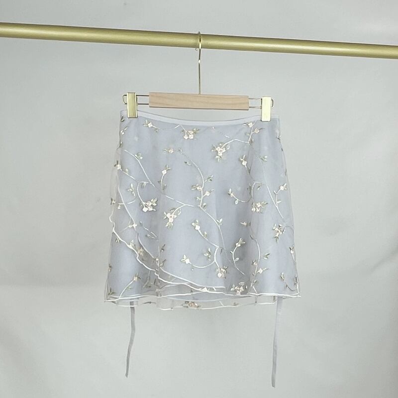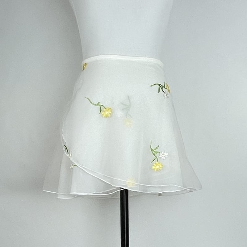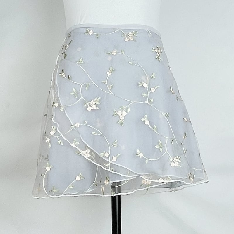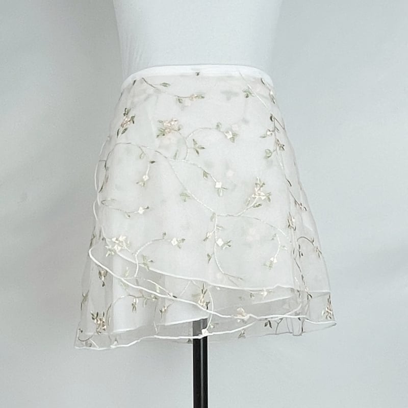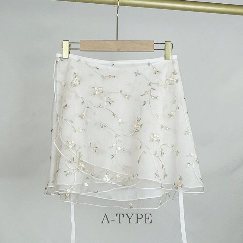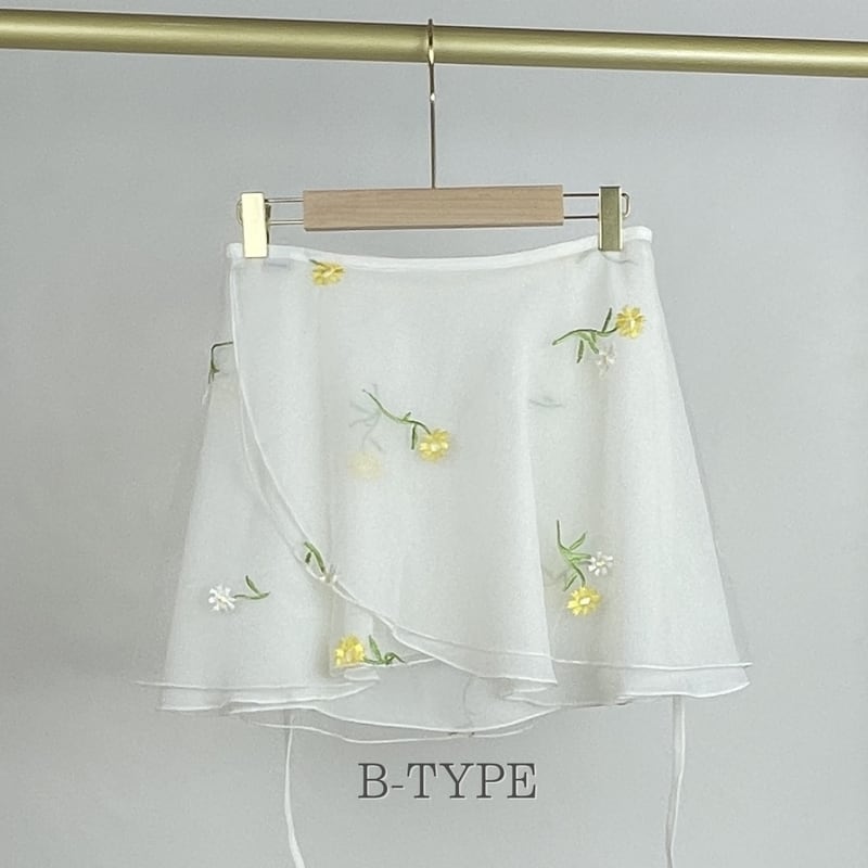 【商品管理番号】 A0110 【商品説明】 フローラル刺繍をあしらったチュールに包まれたラップスカートは、透け感が華やかな印象を演出し、女性らしい魅力を引き立てます。ラップスカートでミニ丈のデザインは、さり気ない透け感が上品であり、動くたびに軽やかに揺れるフレア感が目を引きます。 【サイズ】 【FREE】(ウエストゴム) ウエスト:26cm/着丈:30-35cm 【カラー】 ピンク グレー A-TYPE ホワイト グリーン B-TYPE ホワイト 【素材】 ポリエステル100%