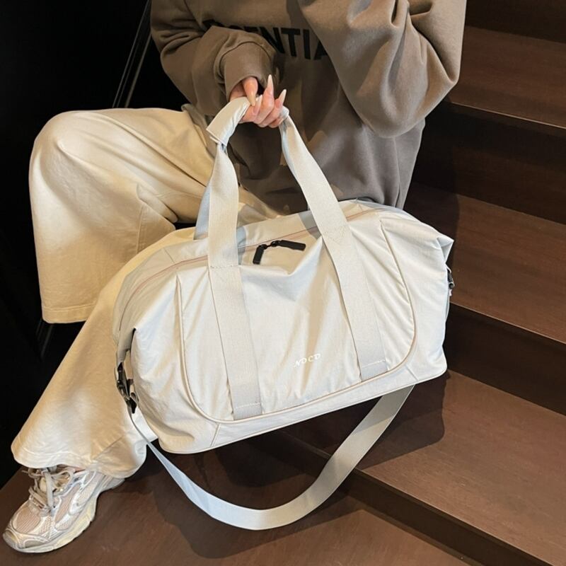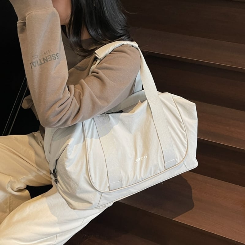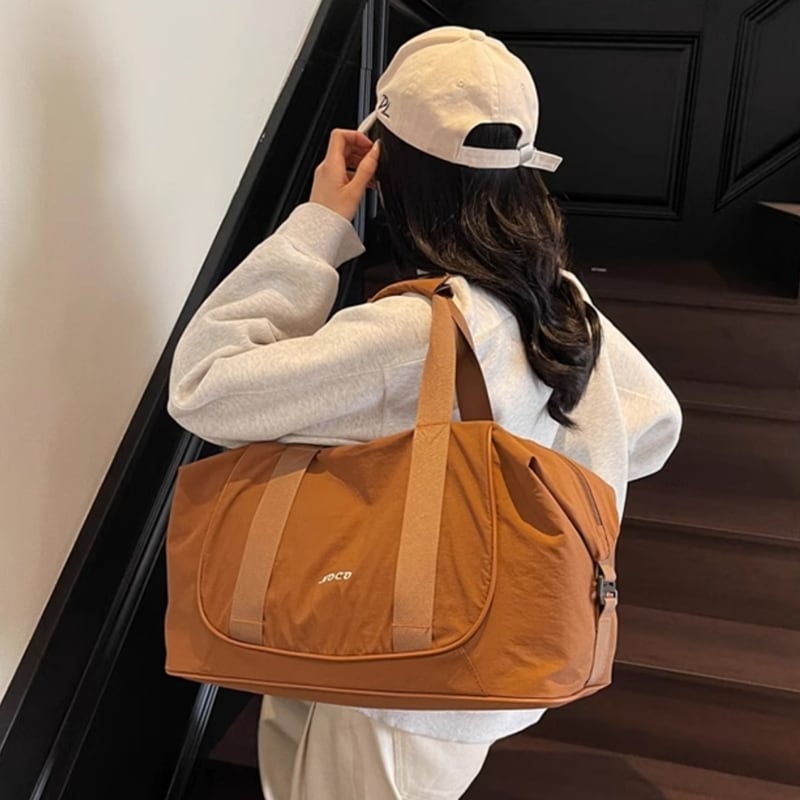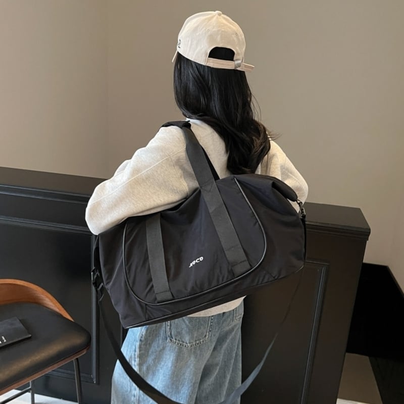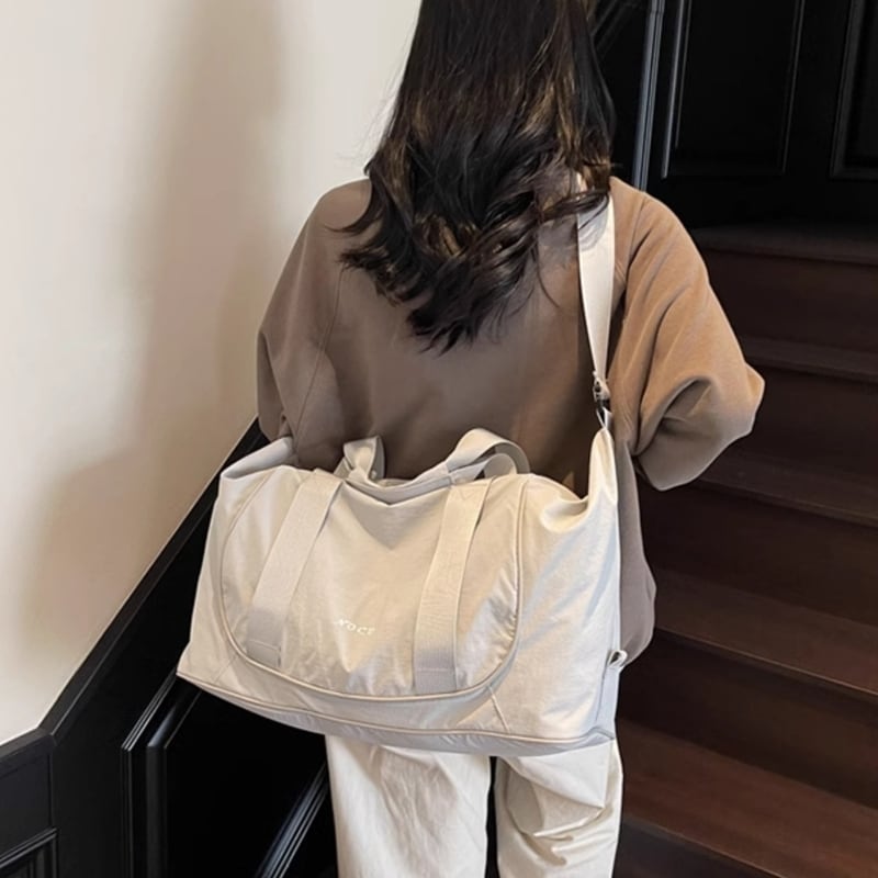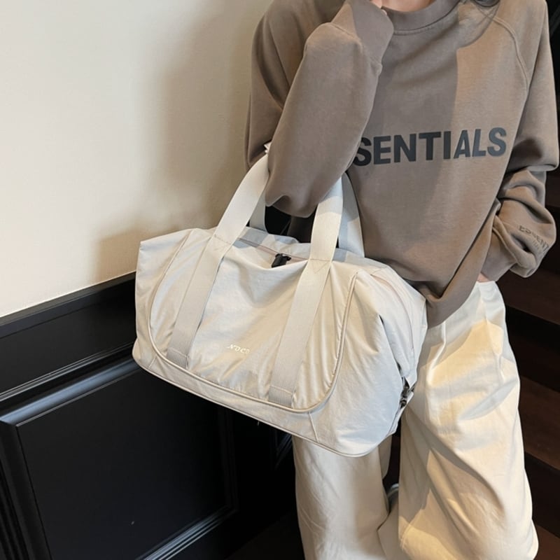 【商品管理番号】 A0278 【商品説明】 カジュアルな質感で仕立てた大ぶりのフィットネスバッグです。さらっとした生地の質感がこなれたデザインで、シーンやスタイルに応じてお好みのスタイルをお楽しみいただけます!デイリーユースにはもちろん、旅行やお出かけにも重宝するアイテムです。美しい仕上がりと使い勝手の良さを兼ね備え、あなたのコーディネートに華を添えます。 【サイズ】 【FREE】高さ:29cm/幅:58cm/マチ:19cm/ハンドル:15cm 【カラー】 グレー ブラウン ブラック 【素材】 オックスフォード生地
