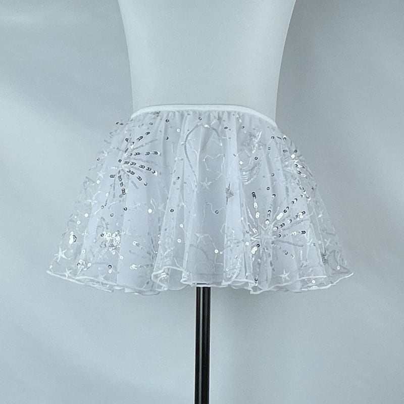 【商品管理番号】 A0292 【商品説明】 きらめくスパンコールで装飾された、短めの着丈特徴のフレアスカートです。メロウな質感と爽やかな透け感が持つ軽やかさは、上品さを引き立てるポイントです。どんなシーンでも映えるスタイルで、大人の女性にぴったりな一着となります。柔らかな素材が身体にフィットし、美しいシルエットを作り出します。様々なシーンで活躍する一着です! 【サイズ】 FREE(ウエストゴム) 【S】ウエスト:25-76cm/着丈:25cm 【M】ウエスト:26-78cm/着丈:28cm 【L】ウエスト:26-78cm/着丈:35cm 【カラー】 ブラック ホワイト 【素材】 ポリエステル100%