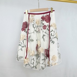 【商品管理番号】 A0293 【商品説明】 花柄刺繍チュールラップスカートは、透け感のある軽やかなチュール素材をレイヤードした可愛らしいミニスカートです。美しい大ぶりの花柄刺繍が際立つフレア感があり、どんなシーンでも上品さを演出します。動くたびにふんわりと揺れるデザインは、女性らしい魅力を引き立て、日常使いや特別な日にもぴったりのアイテムです! 【サイズ】 FREE(ウエストゴム) 【SHORT】ウエスト:26cm/着丈:30-35cm 【MEDIUM】ウエスト:26cm/着丈:35-52cm 【カラー】 アプリコット ホワイト 【素材】 ポリエステル100%