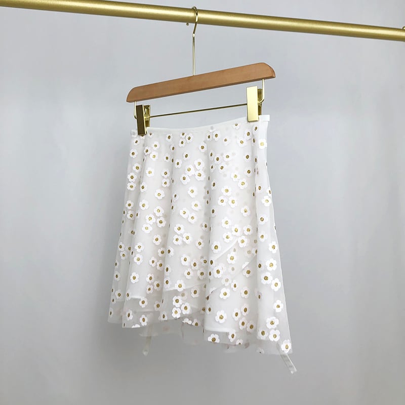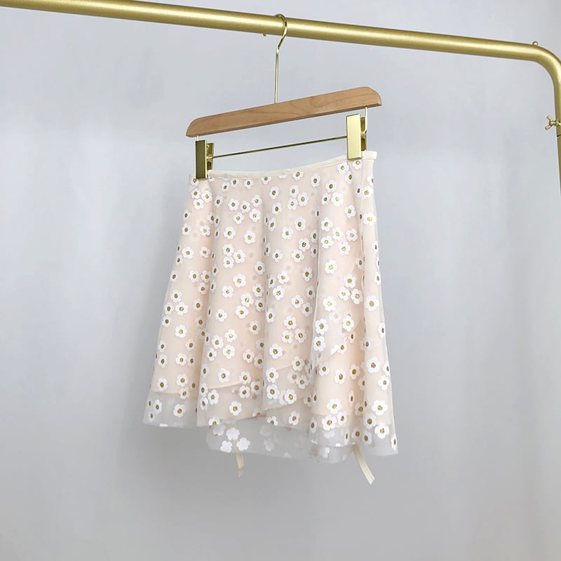 【商品管理番号】 A0318 【商品説明】 淡いカラーにフェミニンなフローラルプリントが愛らしいメッシュラップミニスカートは、軽やかな素材を使用しており、動くたびにふんわりと揺れます。ウエストに華奢なリボンがアクセントとなり、女性らしい魅力を引き立てるデザインです。さまざまなシーンで活躍すること間違いなしの一枚となっています! 【サイズ】 【FREE】ウエスト:95cm/着丈:28-33cm 【カラー】 ホワイト アプリコット 【素材】 ポリエステル100%