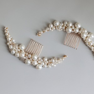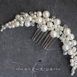 【商品管理番号】 A0358 【商品説明】 パールラインストーンヘアピースは、三日月のように伸びた華やかなデザインが魅力です。パールをふんだんにあしらい、視線を引きつける美しい仕上がりとなっています。また、さっと装着しやすいクシタイプなので、手軽にスタイリングが可能です。特別な日や日常のアクセントとして、さまざまなシーンで活躍するアイテムです 【サイズ】 【FREE】横:15.5cm 【カラー】 パール/ゴールド パール/シルバー パール+ビーズ/ゴールド パール+ビーズ/シルバー