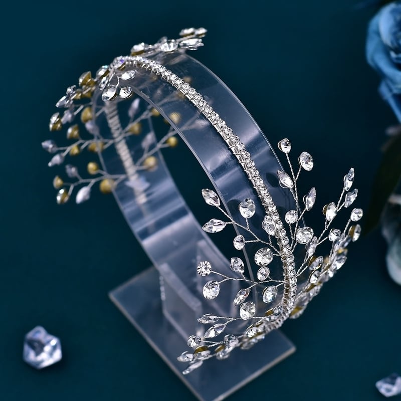 【商品管理番号】 A0364 【商品説明】 ラインストーンリーフカチューシャは、葉の形状を思わせる華やかなデザインが魅力です。ラインストーンの煌めきが、見る人の視線を引きつける美しい仕上がりとなっています。また、さっと装着しやすいカチューシャタイプですので、手軽にスタイリングが可能です。特別な日や日常のアクセントとして、さまざまなシーンで活躍するアイテムです。 【サイズ】 【FREE】頭囲:36cm/直径:12cm 【カラー】 シルバー シャンパン パープル ブルー