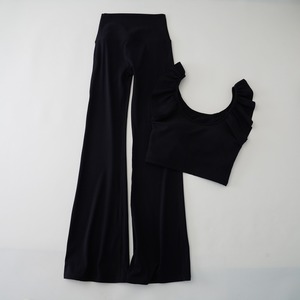 【商品管理番号】 A0398 【商品説明】 肩のボリュームフリルが可愛いクロップトップとロングフレアパンツのセットアップ。シンプルながらスタイリッシュさと快適さを兼ね備えたアイテムです。シンプルながらもおしゃれ感を引き立てるデザインで、様々なコーディネートが楽しめます。カジュアルな日常使いはもちろん、ちょっとしたお出かけやリラックスタイムにもぴったりな一着です。 【サイズ】 トップス 【S】胸囲:72cm/ウエスト:62cm/着丈:21.5cm 【M】胸囲:76cm/ウエスト:66cm/着丈:22.5cm 【L】胸囲:80cm/ウエスト:70cm/着丈:23.5cm 【XL】胸囲:84cm/ウエスト:74cm/着丈:24.5cm パンツ 【S】ウエスト:51cm/ヒップ:66cm/着丈:99cm 【M】ウエスト:55cm/ヒップ:70cm/着丈:100.8cm 【L】ウエスト:59cm/ヒップ:74cm/着丈:102.5cm 【XL】ウエスト:63cm/ヒップ:78cm/着丈:104.2cm 【カラー】 ブラック ホワイト ネイビー ブラウン ピンク 【素材】