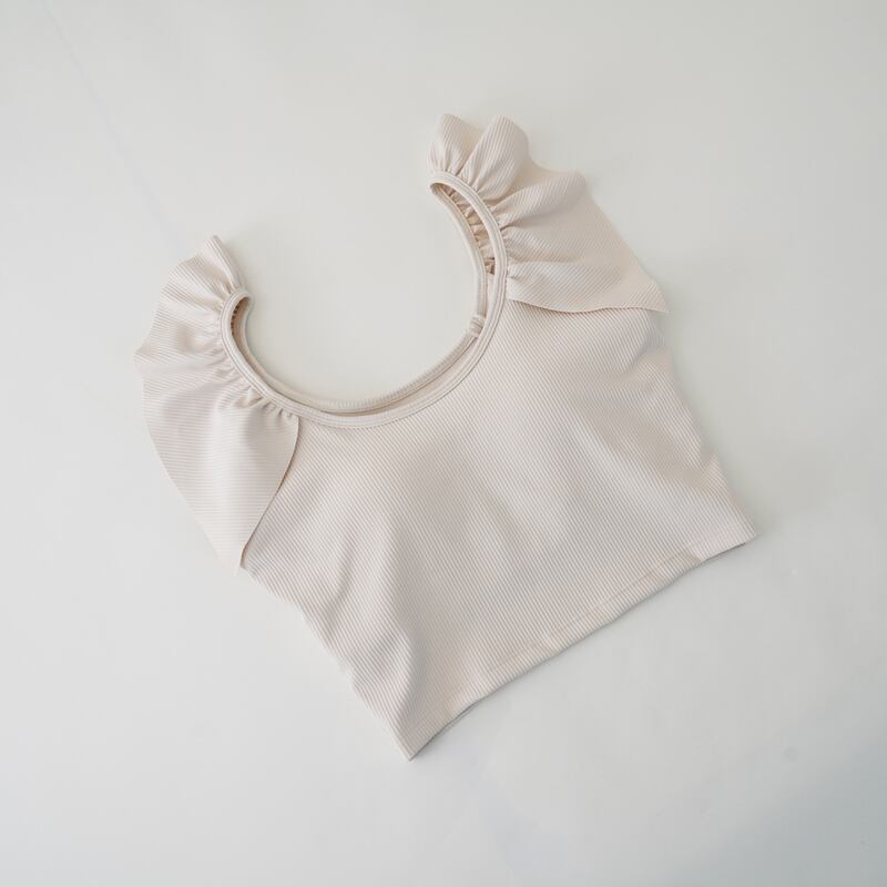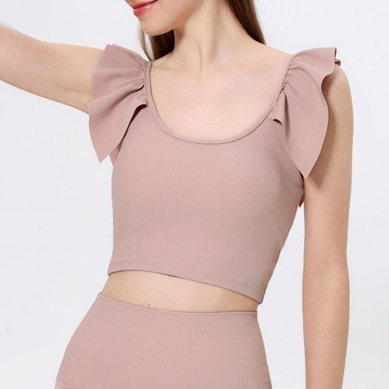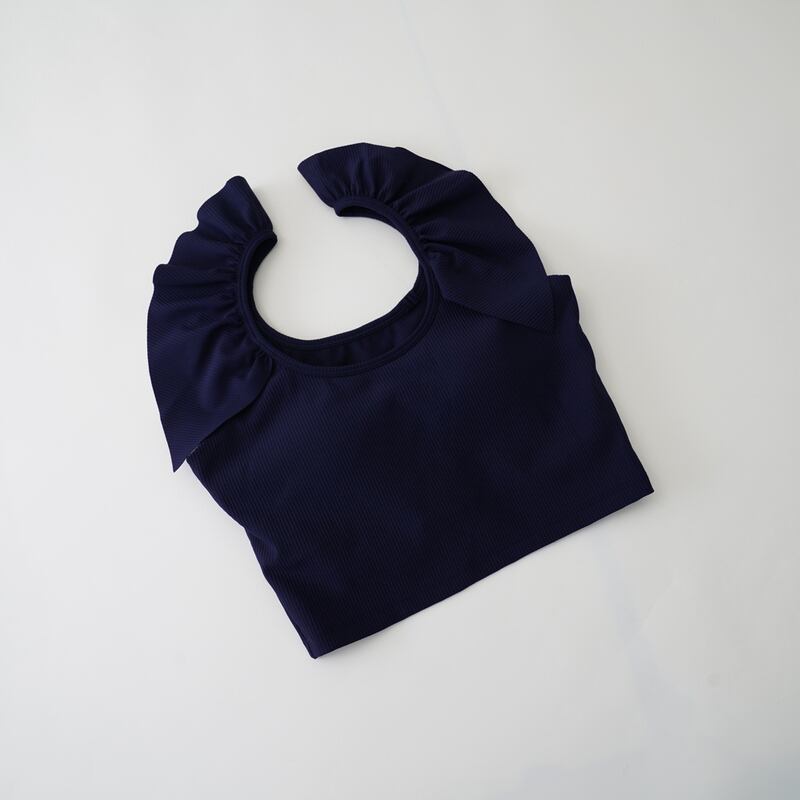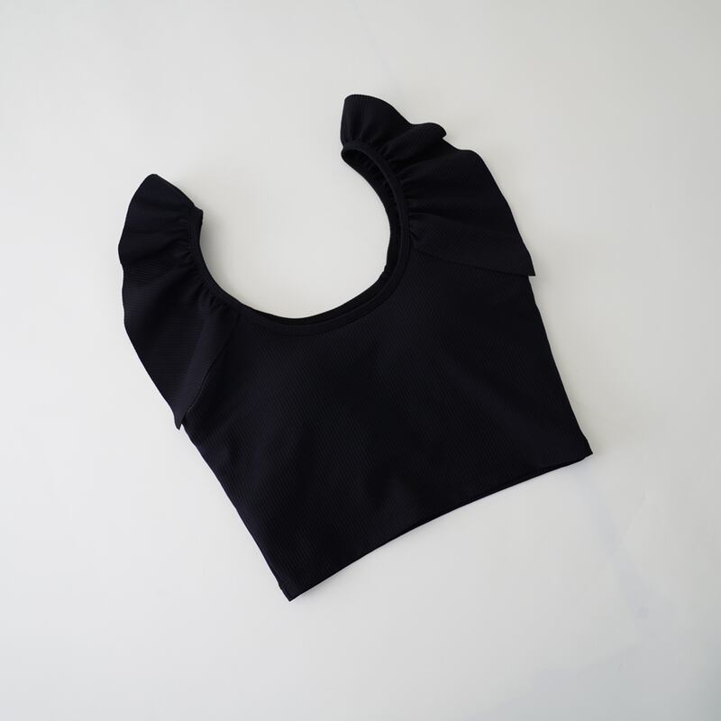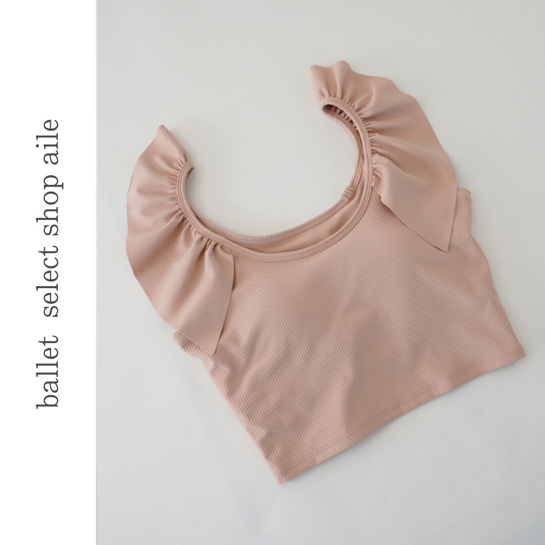 【商品管理番号】 A0400 【商品説明】 肩のフリル装飾がふんわりと愛らしいクロップド丈のトップスは、動きやすいフェミニンなアイテムです。 別売りのパンツとセットアップが可能です。また、軽やかなリブニットの素材感が心地よいので、アクティブなスポーツにも取り入れやすいアイテムです。 【サイズ】 【S】胸囲:72cm/ウエスト:62cm/着丈:21.5cm 【M】胸囲:76cm/ウエスト:66cm/着丈:22.5cm 【L】胸囲:80cm/ウエスト:70cm/着丈:23.5cm 【XL】胸囲:84cm/ウエスト:74cm/着丈:24.5cm 【カラー】 ブラック ホワイト ネイビー ブラウン ピンク 【素材】