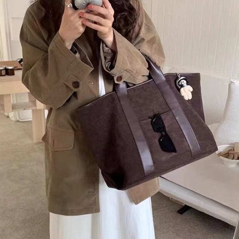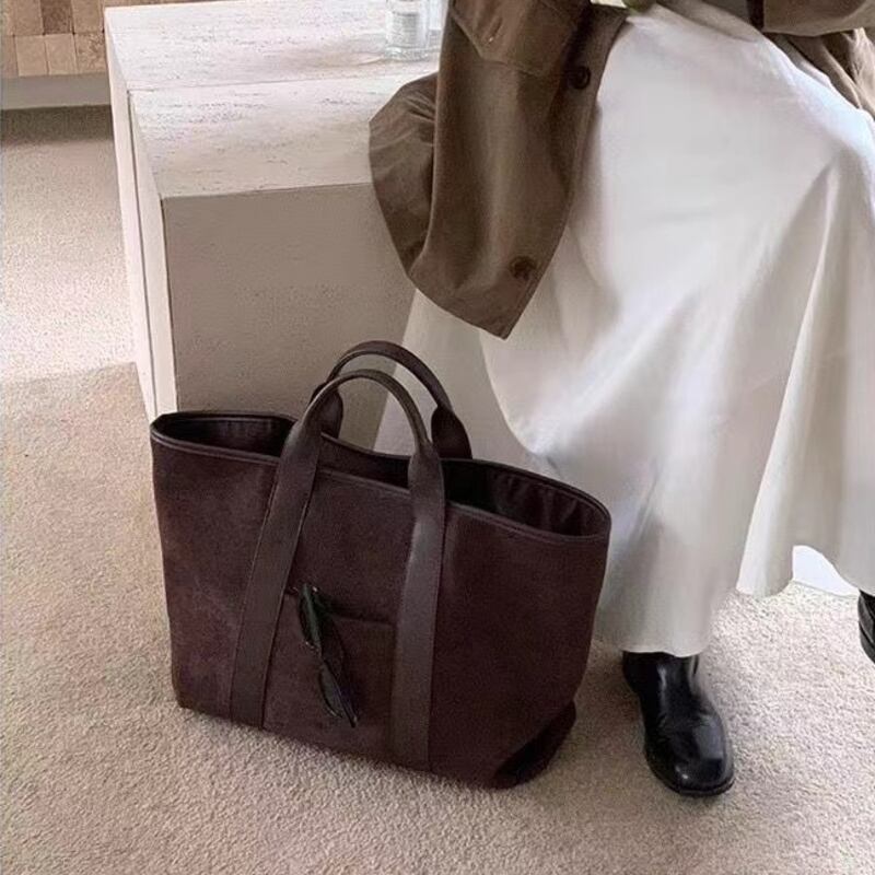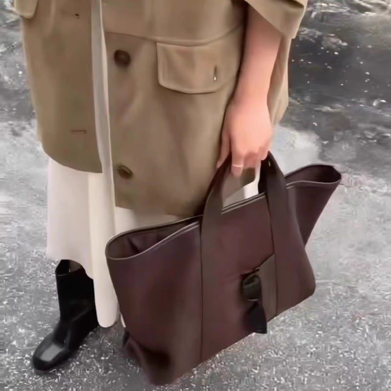 深みのあるシックな質感で仕立てた大ぶりのトートバッグです。短めのハンドルがすっきりとこなれたデザインで、シーンやスタイルに応じてお好みのスタイルをお楽しみいただけます!デイリーユースにはもちろん、旅行やお出かけにも重宝するアイテムです。美しい仕上がりと使い勝手の良さを兼ね備え、あなたのコーディネートに華を添えます。