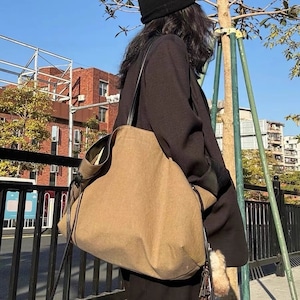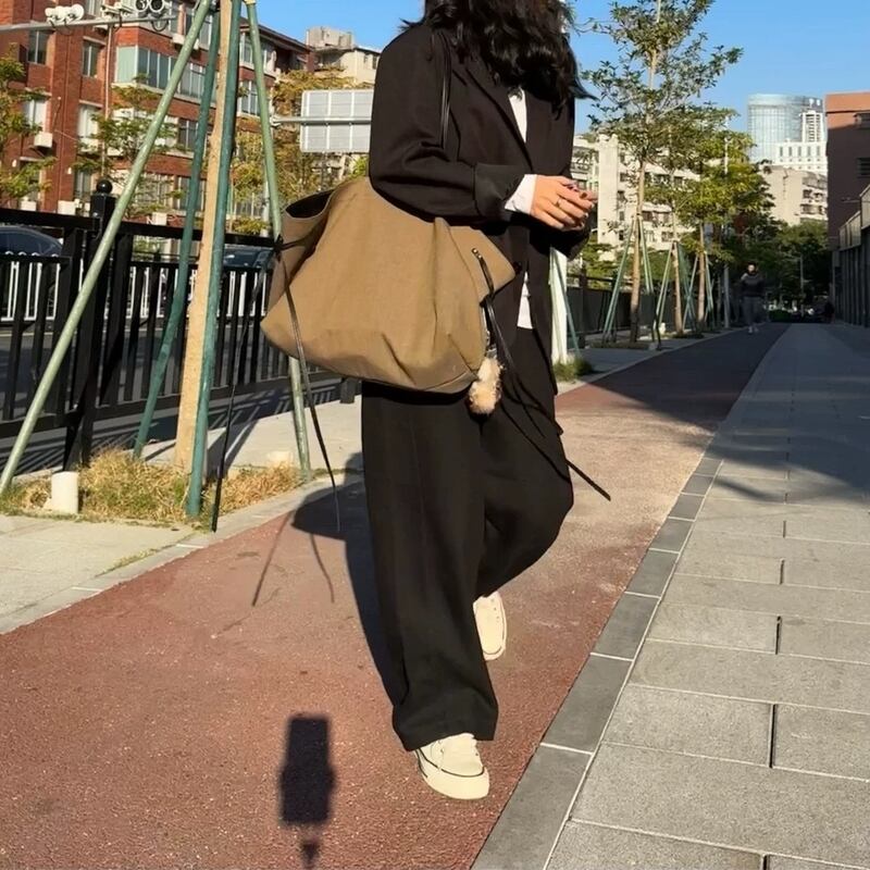 シックな生地の質感がこなれた大ぶりのトートバッグです。細身のストラップとベルトによるツートーンの配色が大人っぽく、シーンやスタイルに応じてお好みのスタイルをお楽しみいただけます!デイリーユースにはもちろん、旅行やお出かけにも重宝するアイテムです。美しい仕上がりと使い勝手の良さを兼ね備え、あなたのコーディネートに華を添えます。