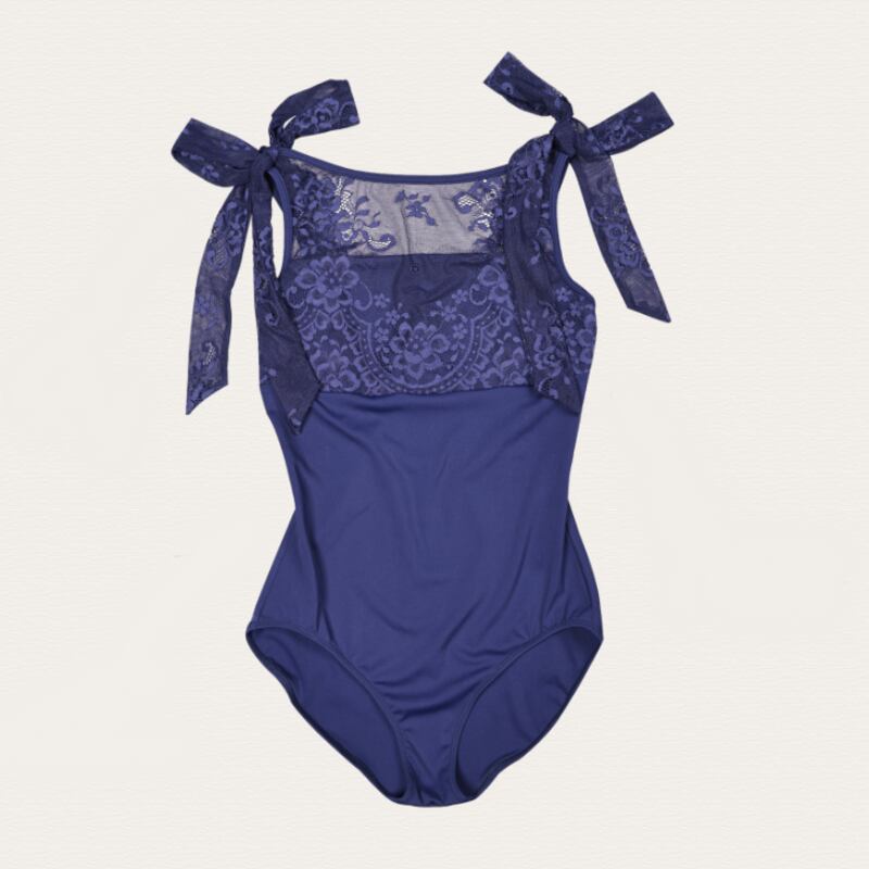 【商品管理番号】 A0081 【商品説明】 花柄レース切り替えのレオタードは、華やかでありながらもエレガントな印象を与えるアイテムです。バスト周りに花柄のレースが施され、肩紐を大きなリボンで仕立てたデザインは、ダンスパフォーマンスや日常の練習にぴったりで、可憐さを引き立てます。柔らかな素材が身体にフィットし、美しいシルエットを作り出します。 【サイズ】 【S】胸囲:73cm/ウエスト:58cm/ヒップ:71cm/着丈:62.462 【M】胸囲:77cm/ウエスト:62cm/ヒップ:75cm/着丈:64.362 【L】胸囲:81cm/ウエスト:66cm/ヒップ:79cm/着丈:66.262 【XL】胸囲:85cm/ウエスト:70cm/ヒップ:83cm/着丈:68.2 【カラー】 ネイビーブルー 【素材】 ナイロン75%/ポリウレタン25%