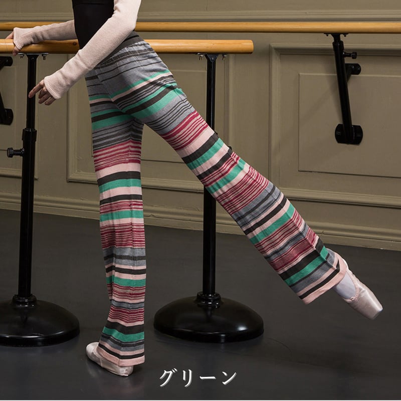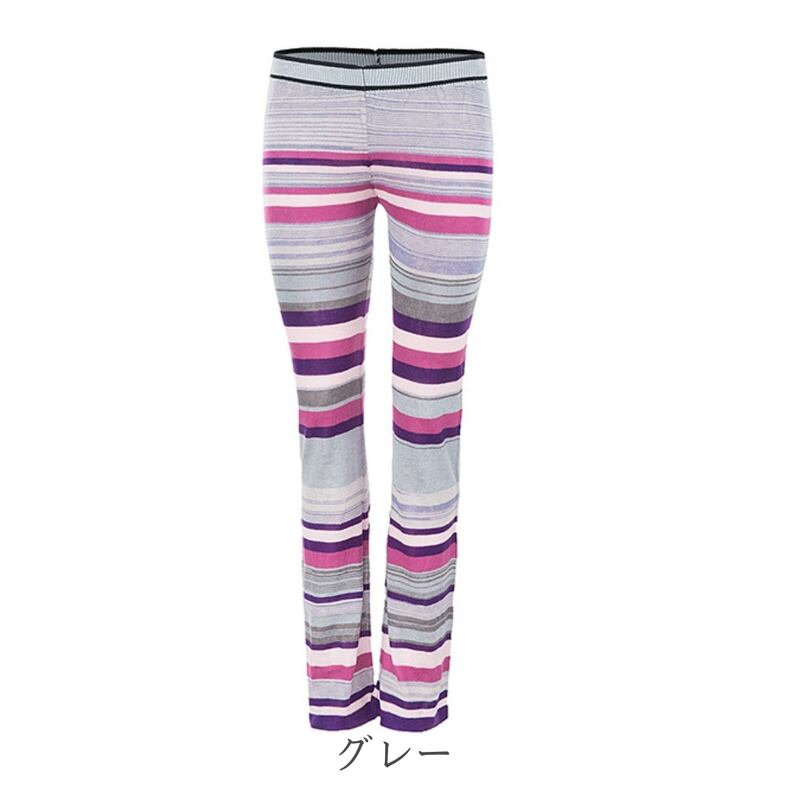 【商品管理番号】 A0171 【商品説明】 ビビットなカラーが特徴的なデザインで、さまざまなシーンで活躍するウォームアップパンツです。フレア感のある仕立ては、アクティブな動きをサポートします。リラックスしたシルエットが身体を包み込み、スタイリッシュな印象を与えます。マルチボーダーパターンが目を引くデザインで、ウォーミングアップやフィットネスの最中でも思い切り身体を動かせることができます。 【サイズ】 【S】総丈:72cm/股上:25cm/わたり幅:23cm/裾口:21cm 【M】総丈:75cm/股上:27cm/ヒップ:24.5cm/裾口:22.5cm 【L】総丈:78cm/股上:29cm/ヒップ:26cm/裾口:24cm 【XL】総丈:80cm/股上:31cm/ヒップ:27.5cm/裾口:25.5cm 【カラー】 パープル グレー グリーン 【素材】 コットン60%/アクリル30%/ポリウレタン10%