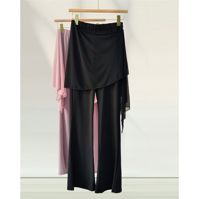 【商品管理番号】 A0181 【商品説明】 シルエットが綺麗なフレアパンツと透け感が上品なラップスカートのセットアップです。ドッキングデザインが便利で、様々なスタイルに取り入れられる一着。軽やかなシアー素材が女性らしさを引き立て、日常のコーディネートや特別な場面でも活躍します。おしゃれなシルエットで、毎日のスタイルに新鮮さをプラスします。 【サイズ】 【S】着丈:99cm 【M】着丈:101cm 【L】着丈:103cm 【XL】着丈:105cm 【カラー】 ピンク ブラック ベージュ ワインレッド 【素材】 ポリエステル95/ポリウレタン5%