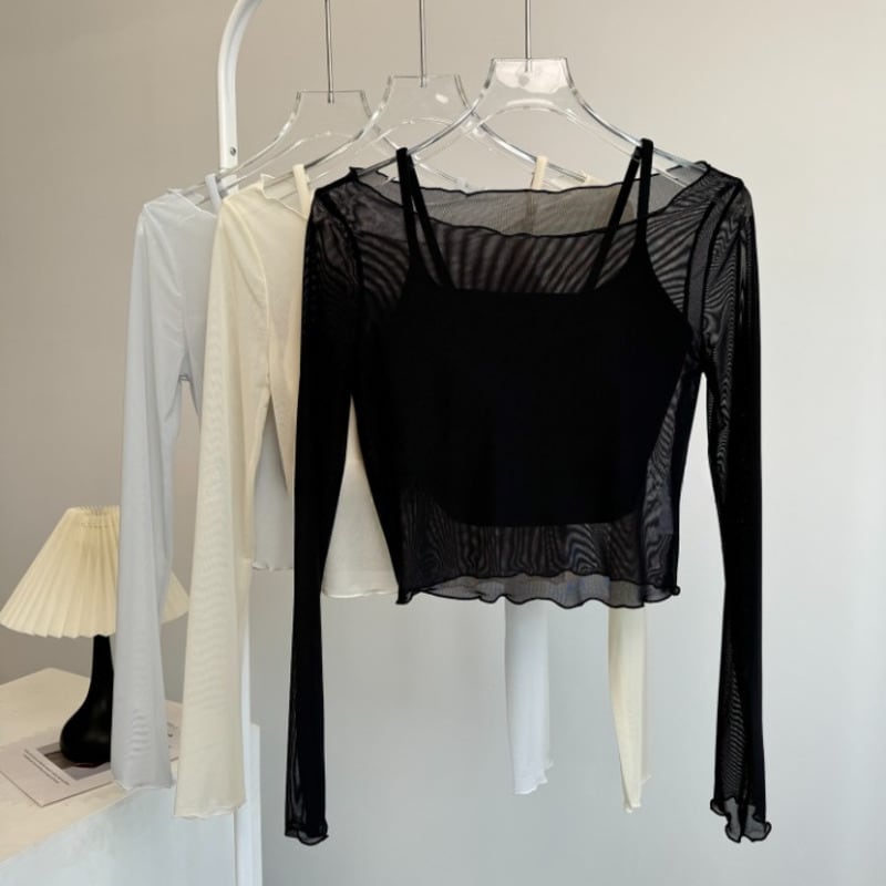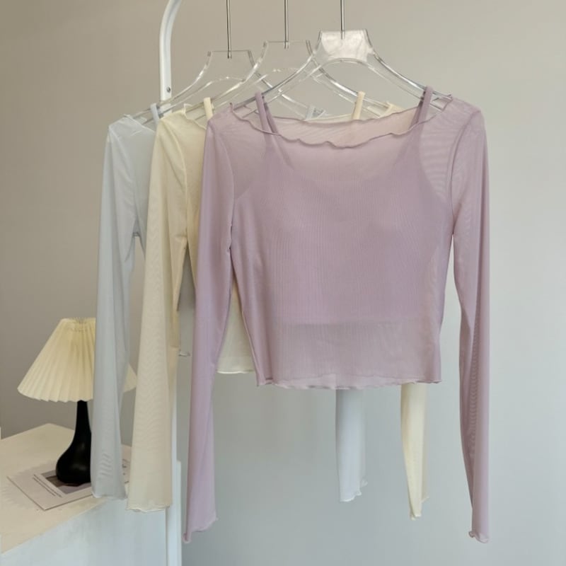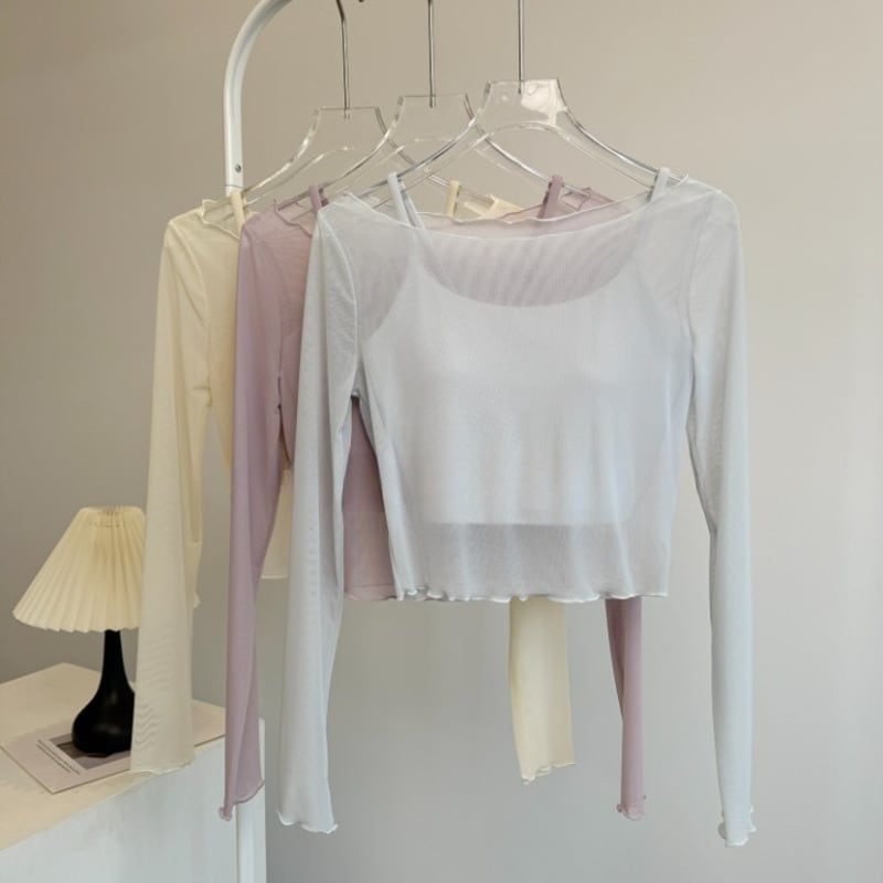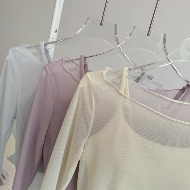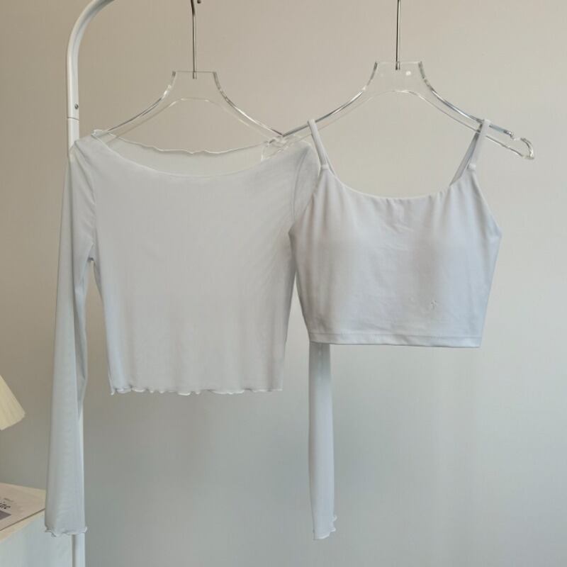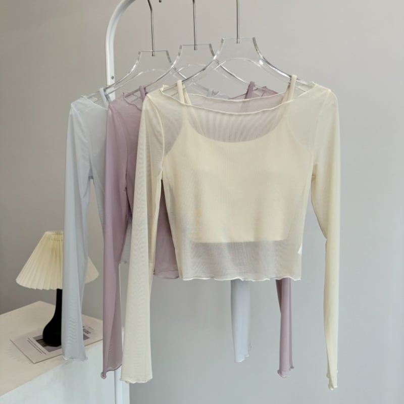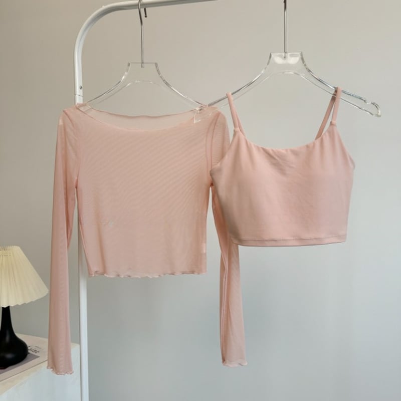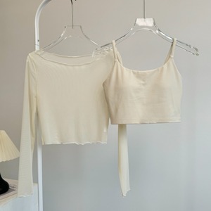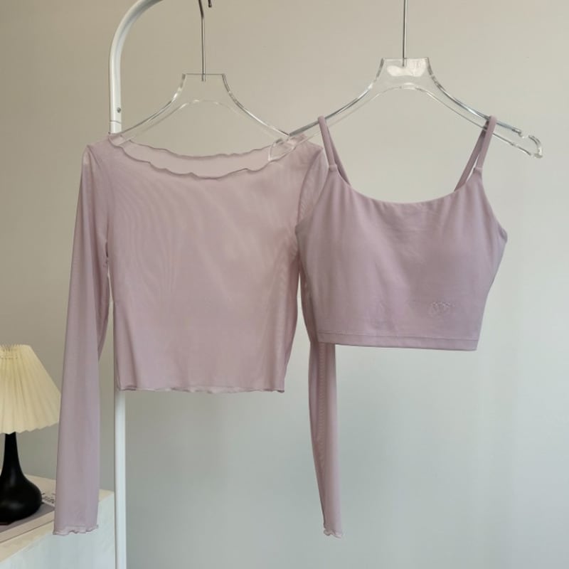 【商品管理番号】 A0200 【商品説明】 メロウなニュアンスが施された、こなれ感のあるショート丈トップスと便利なシンプルインナーのセットです。透け感のある素材が大人の女性らしさを引き立て、さらりとした肌触りで軽やかな質感を実現しています。シンプルながらもおしゃれ感を醸し出すデザインで、スポーツからちょっとしたお出かけまで幅広く活躍します。 【サイズ】 トップス 【S】バスト:68cm/肩幅:33cm/着丈:37cm 【M】バスト:72cm/肩幅:35cm/着丈:38cm 【L】バスト:76cm/肩幅:37cm/着丈:39cm 【XL】バスト:80cm/肩幅:39cm/着丈:40cm インナー 【S】バスト:64cm/アンダーバスト:56cm/着丈:29cm 【M】バスト:68cm/アンダーバスト:60cm/着丈:30cm 【L】バスト:72cm/アンダーバスト:64cm/着丈:31cm 【XL】バスト:76cm/アンダーバスト:68cm/着丈:32cm 【カラー】 ホワイト ピンク ライトブルー パープル ブラック 【素材】 ナイロン100%