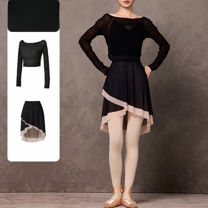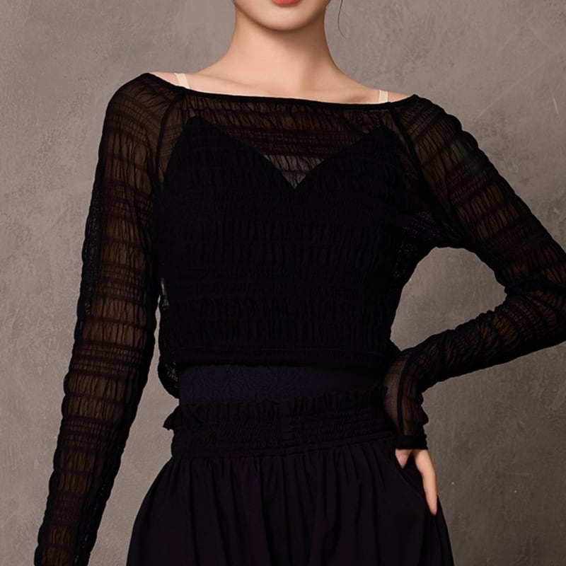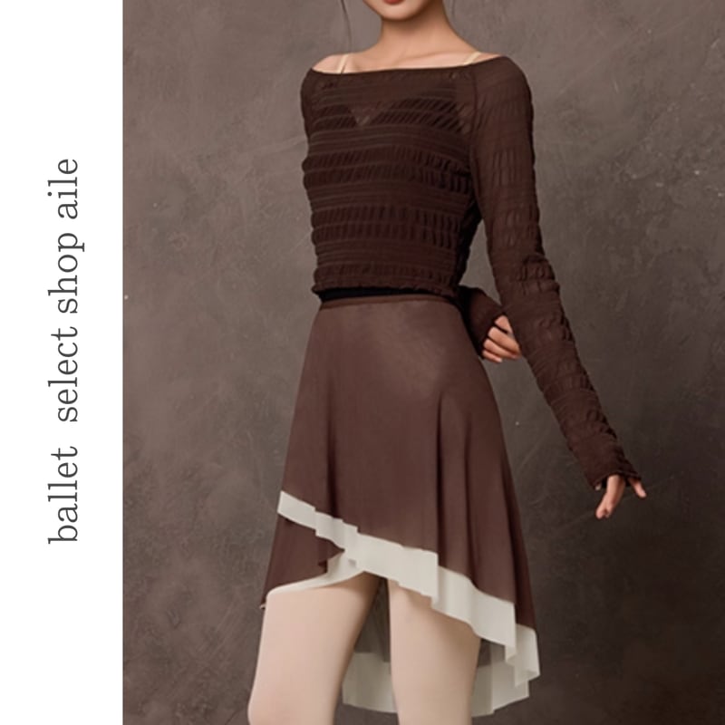 【商品管理番号】 A0215 【商品説明】 柔らかなシフォンスカートとシアーメッシュトップスの組み合わせが魅力的な一着です。エレガントなデザインは、カジュアルな日常使いから特別なシーンまで幅広く対応し、優美さを引き立てます。フレアスカートは軽やかなシフォンが身体にやさしくつつみ、動くたびに美しいシルエットを作り出します。 【サイズ】 トップス 【S】胸囲:77cm/着丈:32cm/袖丈:61.5cm 【M】胸囲:81cm/着丈:33.5cm/袖丈:63cm 【L】胸囲:85cm/着丈:35cm/袖丈:64.5cm 【XL】胸囲:89.5cm/着丈:37cm/袖丈:66cm 【2XL】胸囲:94cm/着丈:39cm/袖丈:67.5cm (スカートサイズはサイズ表にてご確認ください) 【カラー】 ブラウン ブラック 【素材】 ナイロン98%/ポリウレタン2%