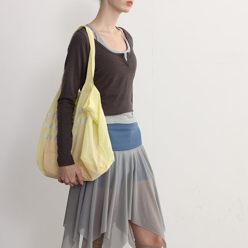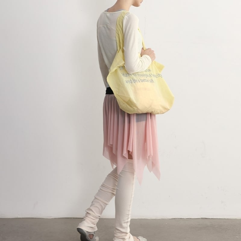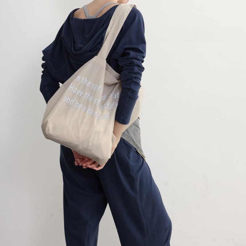 【商品管理番号】 A0258 【商品説明】 レタリングトートバッグは、大人かわいいデザインが魅力のナイロン仕立ての大ぶりトートです。しっかりとしたサイズ感で、日常使いやお出かけにもぴったり。レタリングのデザインがスタイリングのアクセントになり、シンプルなコーディネートにも華やかさをプラスします。レッスンやお出かけ、ショッピングなど、さまざまなシーンで活躍すること間違いなしのアイテムです! 【サイズ】 【FREE】高さ:56cm/横:31.5cm 【カラー】 ホワイト ベージュ イエロー ブルー レッド 【素材】 ナイロン100%